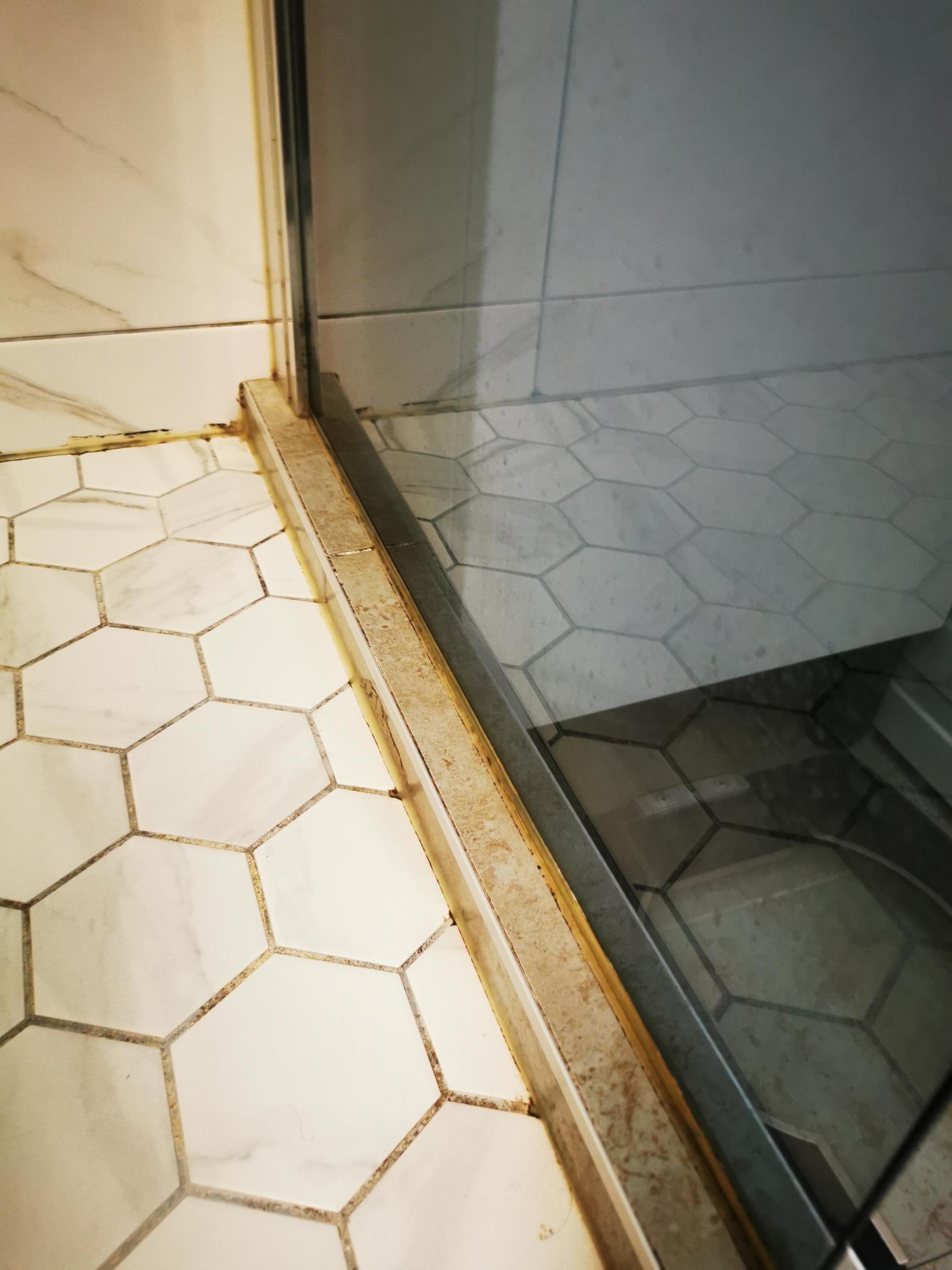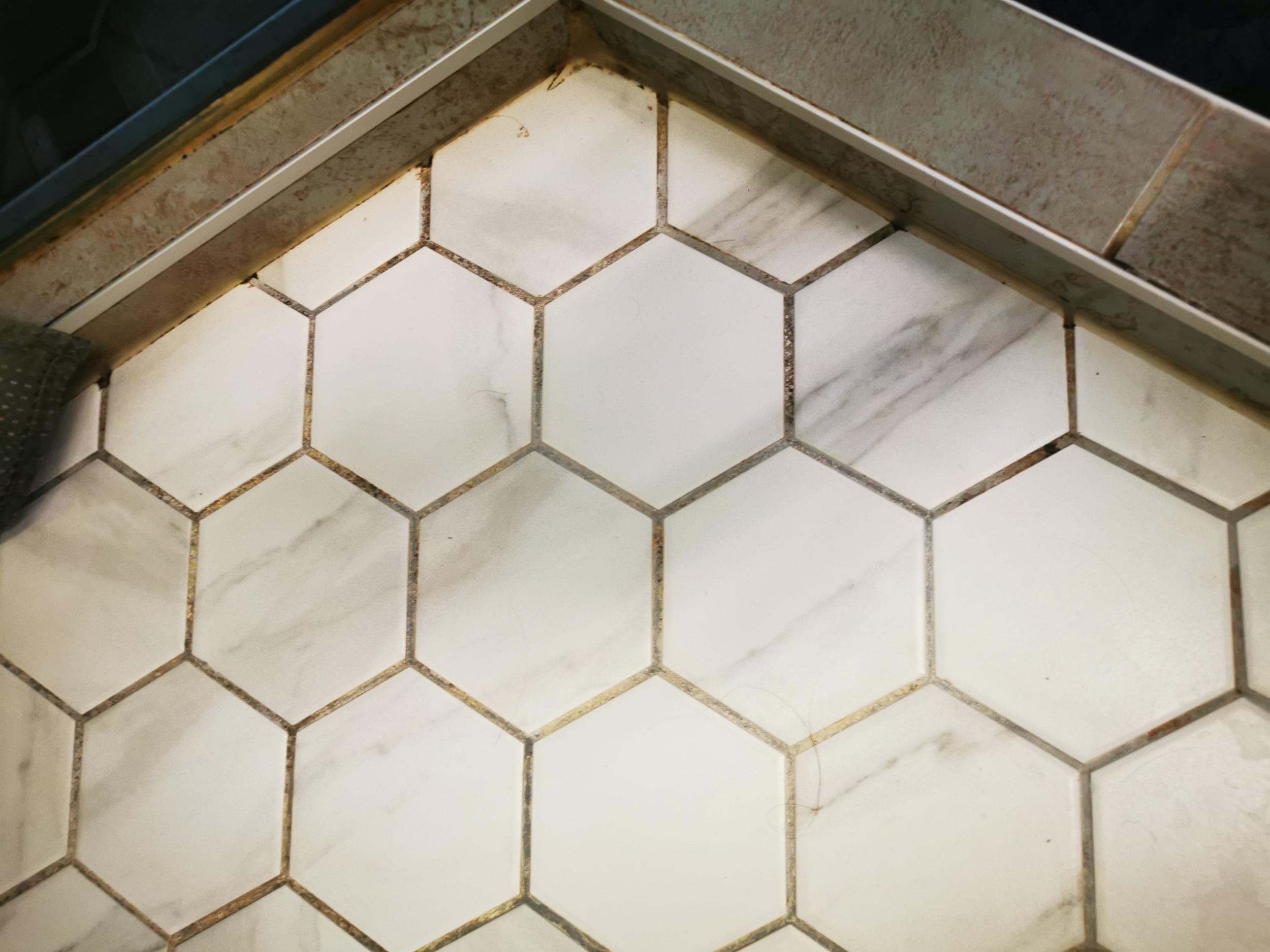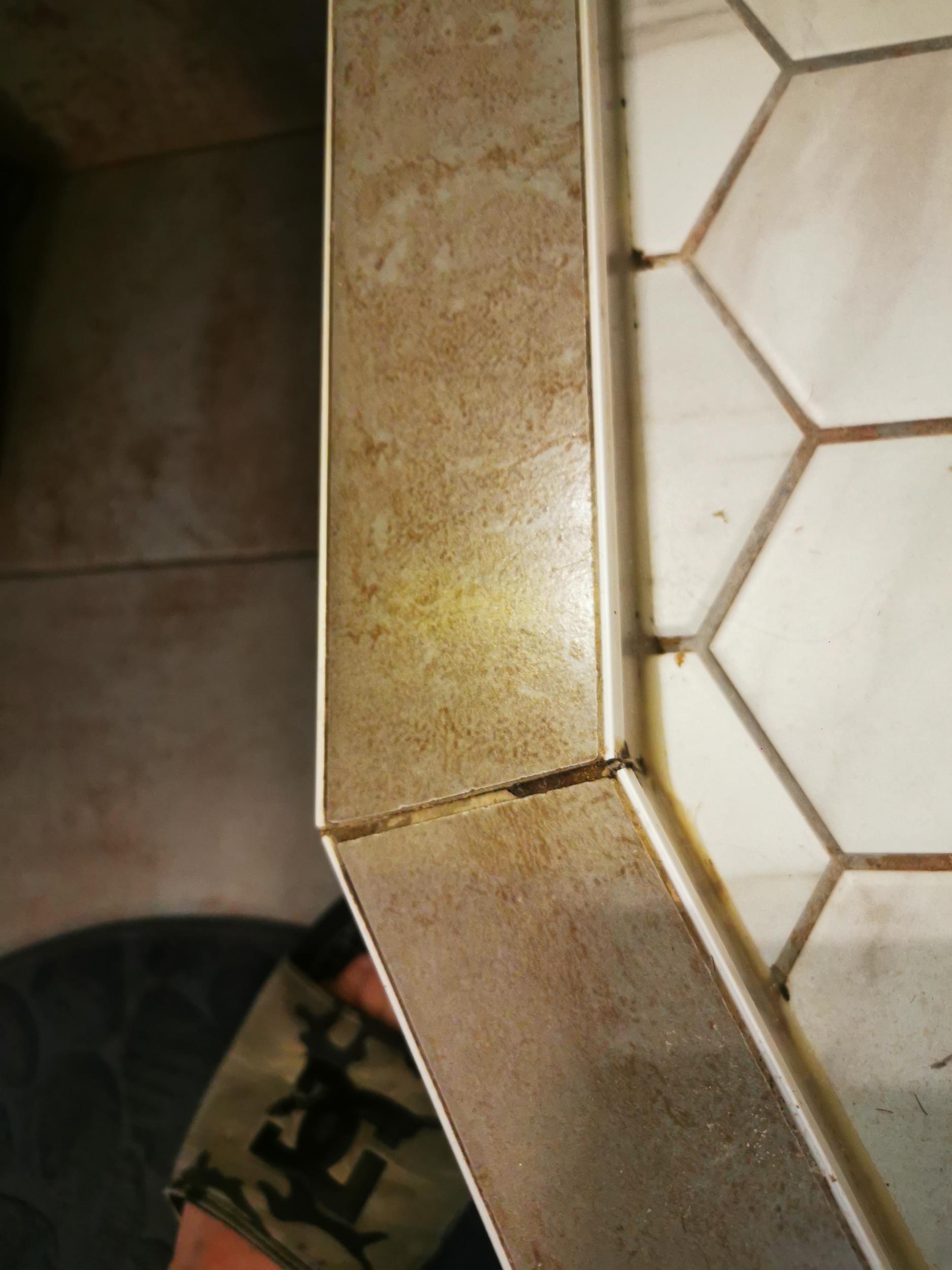 Vaja on hallitanud vuugivahed puhastada ja täita uuesti Mapei epovuugiseguga. Hallitanud on erinevad seina ja nurga vuugivahed. Lisaks mõned murenenud vahed.