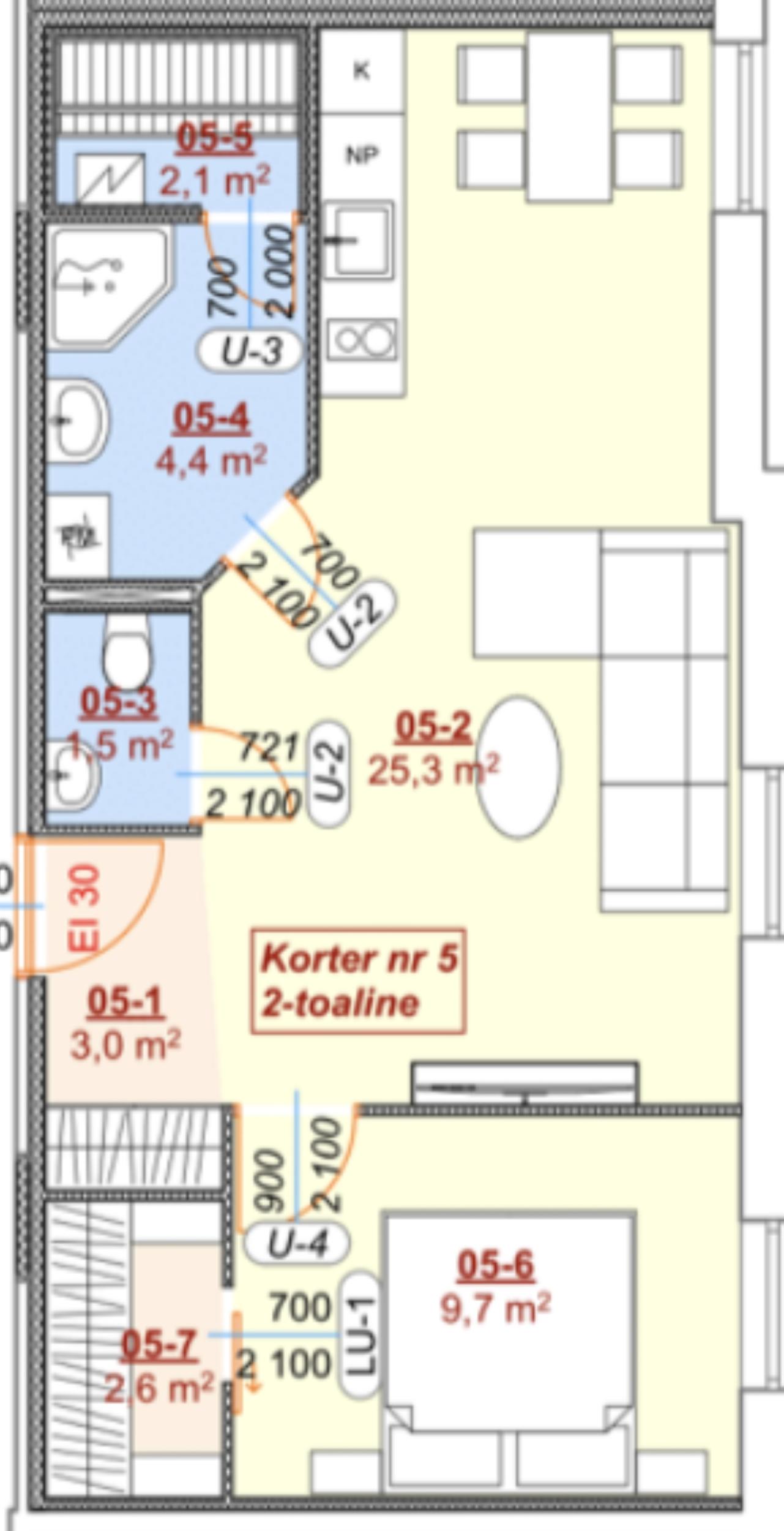 Põrandad, seinad, laed, aknad, sisemised, wc vannituba, elekter. Ventilatsiooniks mõeldud fresh klapid. |