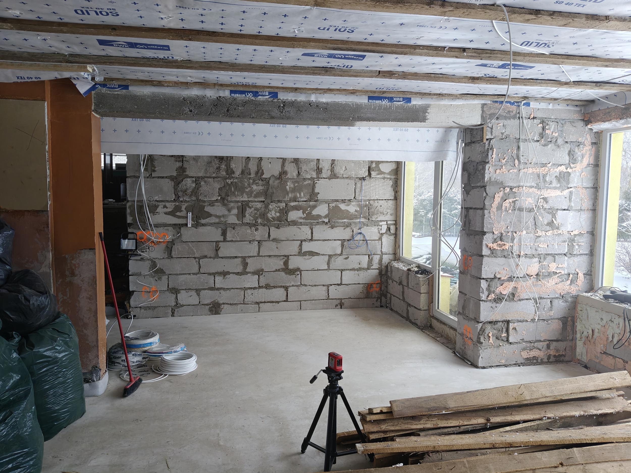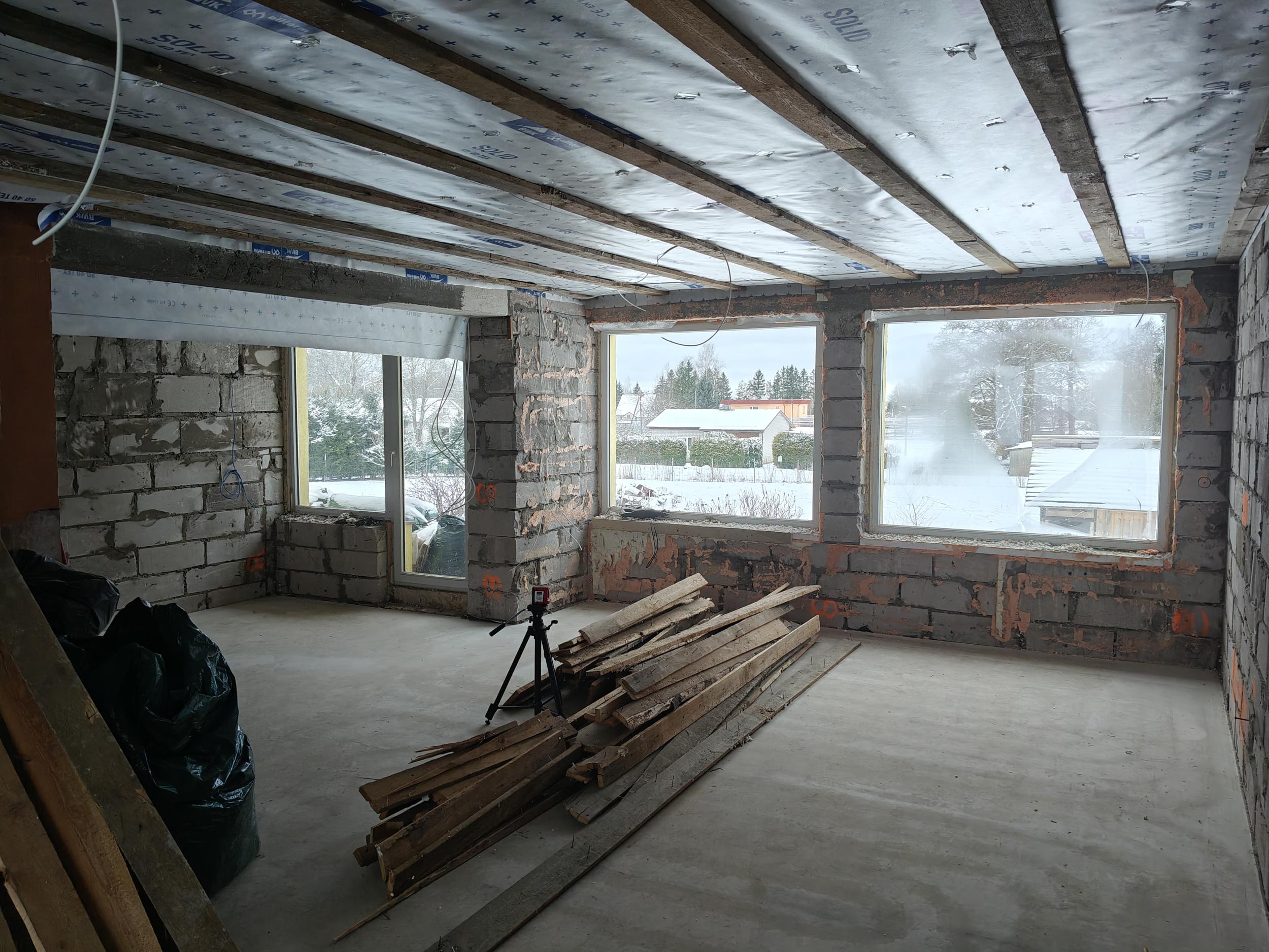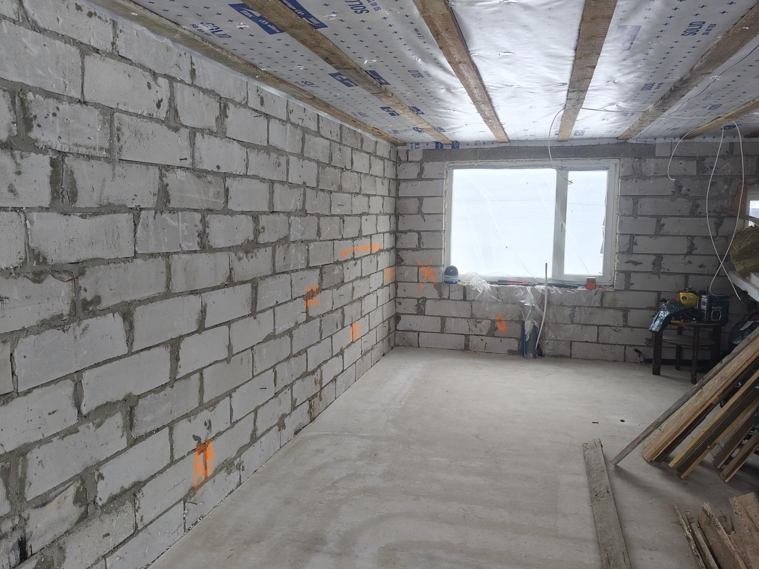 Eramaja siseseinte krohvimine. Töö maht 50m2 seina pinda. Seinte kõrgus 2,5 m. Seinad tuhaplokist, ehitusaasta 1988(Narva plokk). Seinad sirged, aga esineb eelnevast töökvaliteedist tulenevaid ebatasasusi.