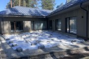 Kolm plaatvundamendiga maja, millele vaja laduda 2.6m kõrged seinad.