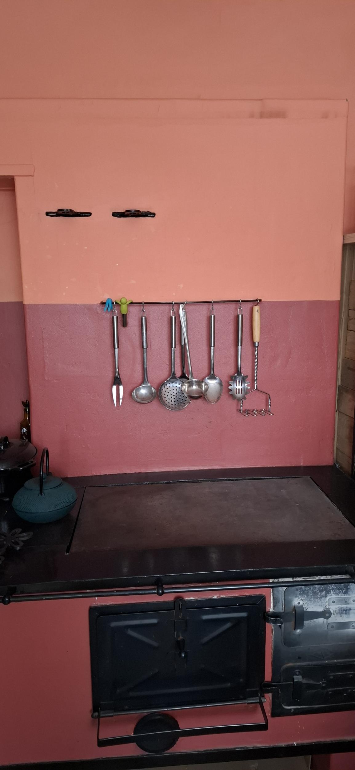 Soemüür on laotud pottidest ja ülevalt servast ning küljel olevatest pragudest immitseb läbi suitsu.