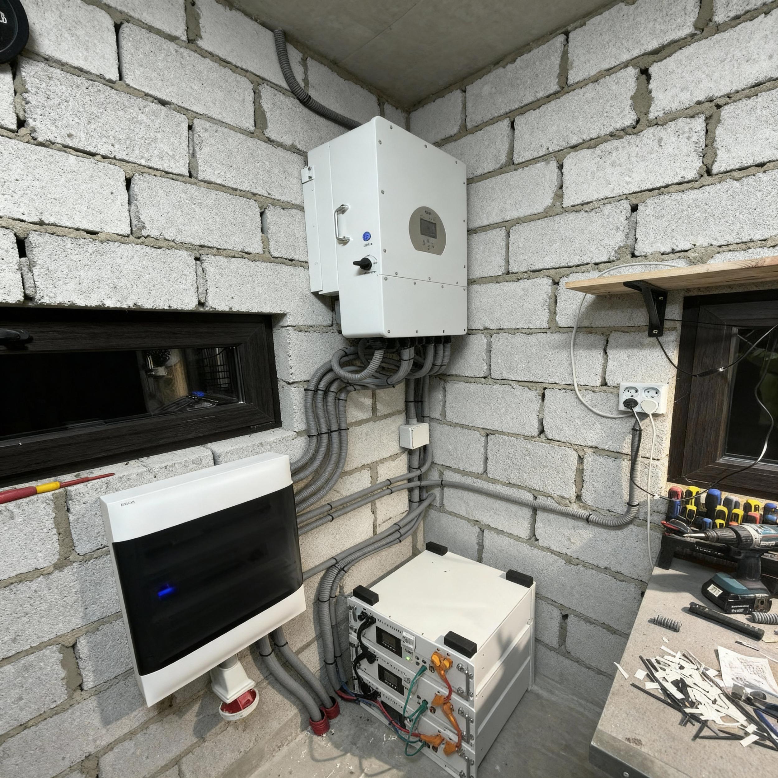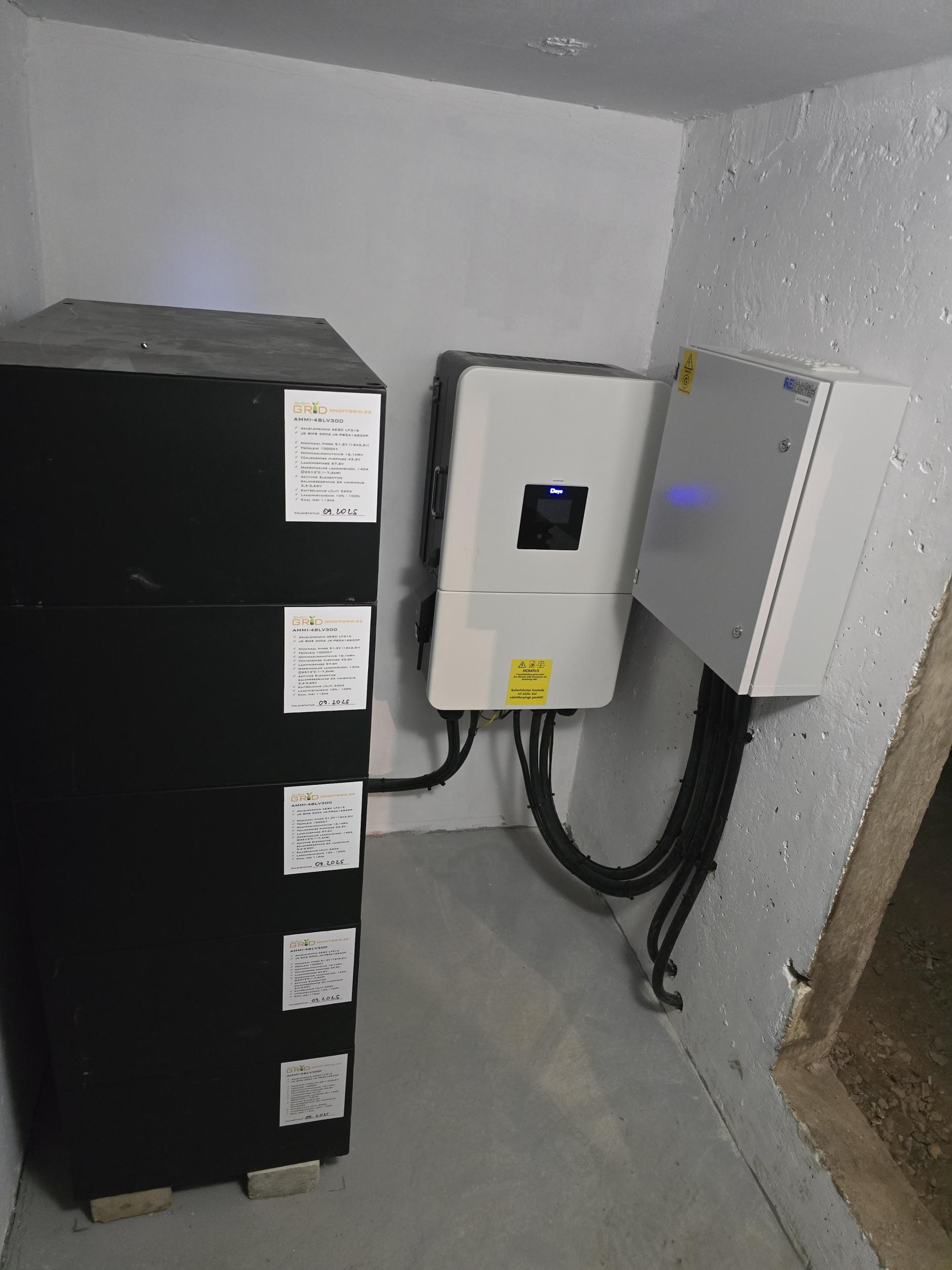 - Deye või Solis hübriidinverteritega
