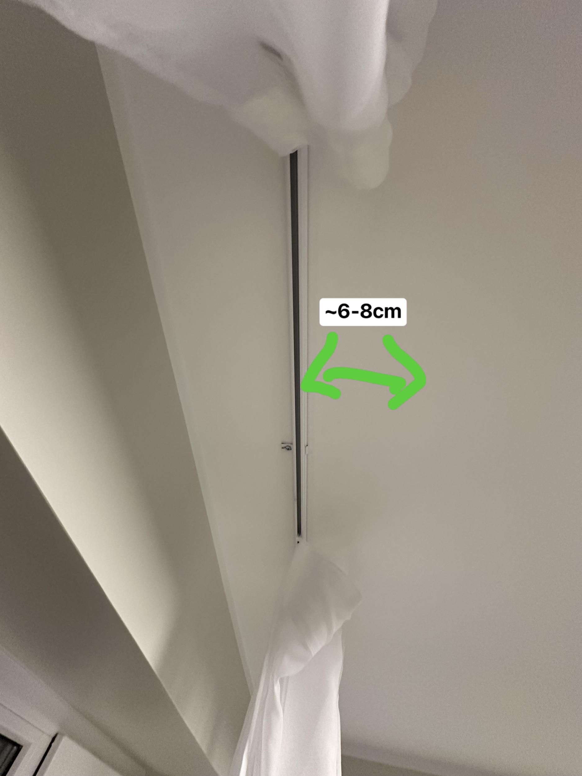 Oleks vaja paigaldada kardinasiin, umbes 6-8cm olemasolevast siinist paremale. Hakkab hoidma kanga materjalist pimendavaid kardinaid. Olemasolev siin laes tundub olevat allumiiniumist