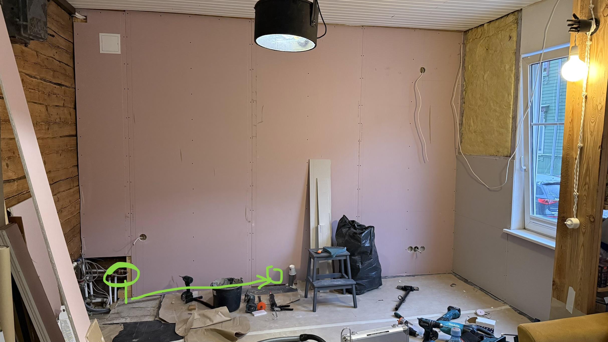 Vaja on tuua köögis veesõlmest külm ja soe vesi uue kraanikausi asukohta ca 2m eemal. Seal tekitada külma vee väljavõtt nii kraanikausile kui nõudepesumasinale; sooja vee oma ainult kraanikausile. Kapid vaikselt tekivad, hetkel on tühi sein. Samuti on vaja tekitada kanalisatsiooni sisenemiseks ots kraanikausile ja nõudepesumasinale ning arvestada, et kuni tööpinna tulekuni on seal küljes ainult nõudepesumasin ja teisest otsast ei tohi vett välja tulla. Kanalisatsioonitoru on õige koha peal. Töö peaks valmima hiljemalt 12.01 õhtuks, töid teostada saab ka varasematel päevadel.