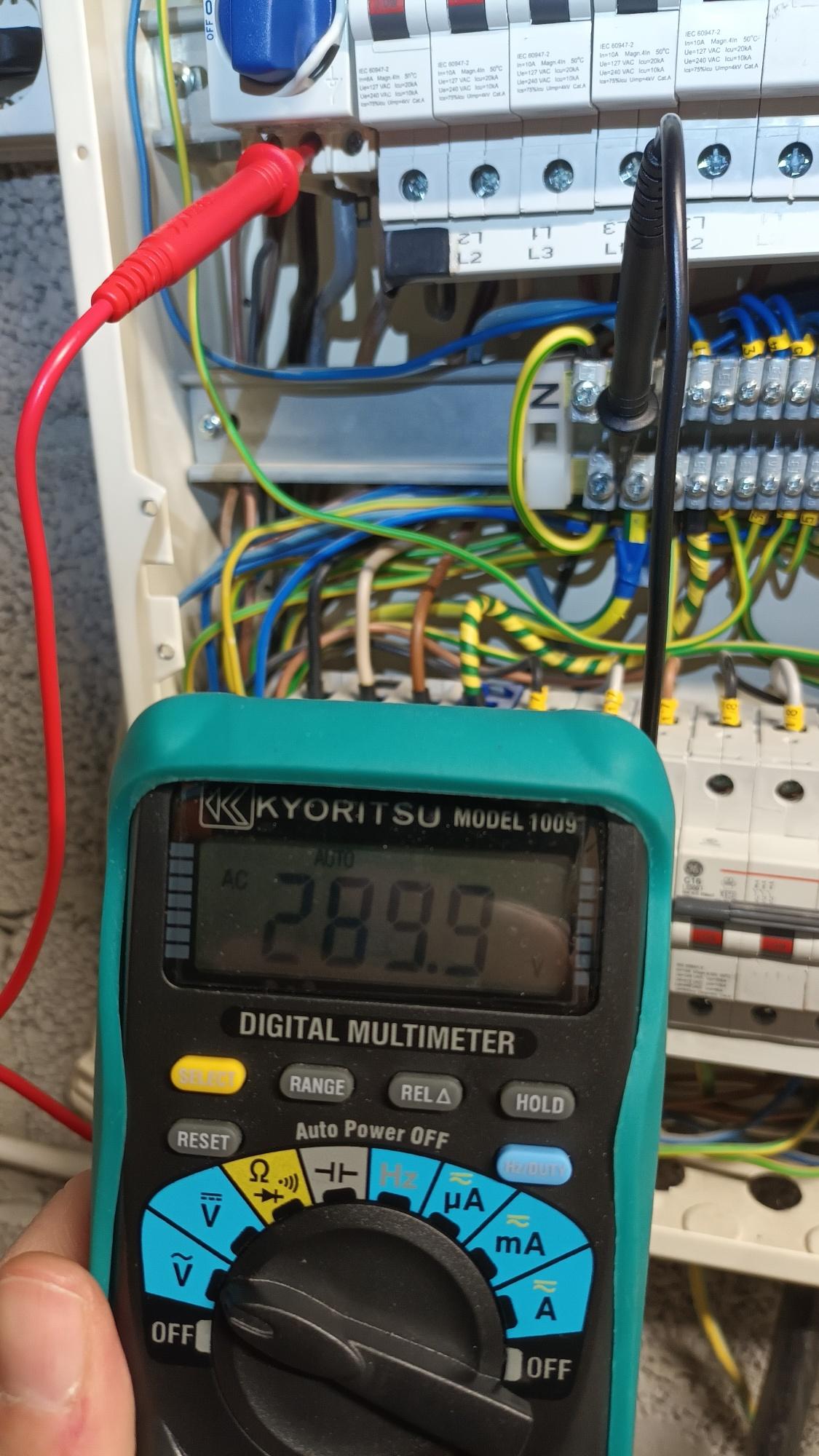 Maja peakilpi siseneva kaabli kahel faasil kolmest (mõõdetuna faasi ja nulli vahel) on pinge normist palju suurem või väiksem (vastavalt 289V ja 202V). Faaside vaheline pinge on normis (ca 400V). Mõõtetulemuste pildid kirja manuses.