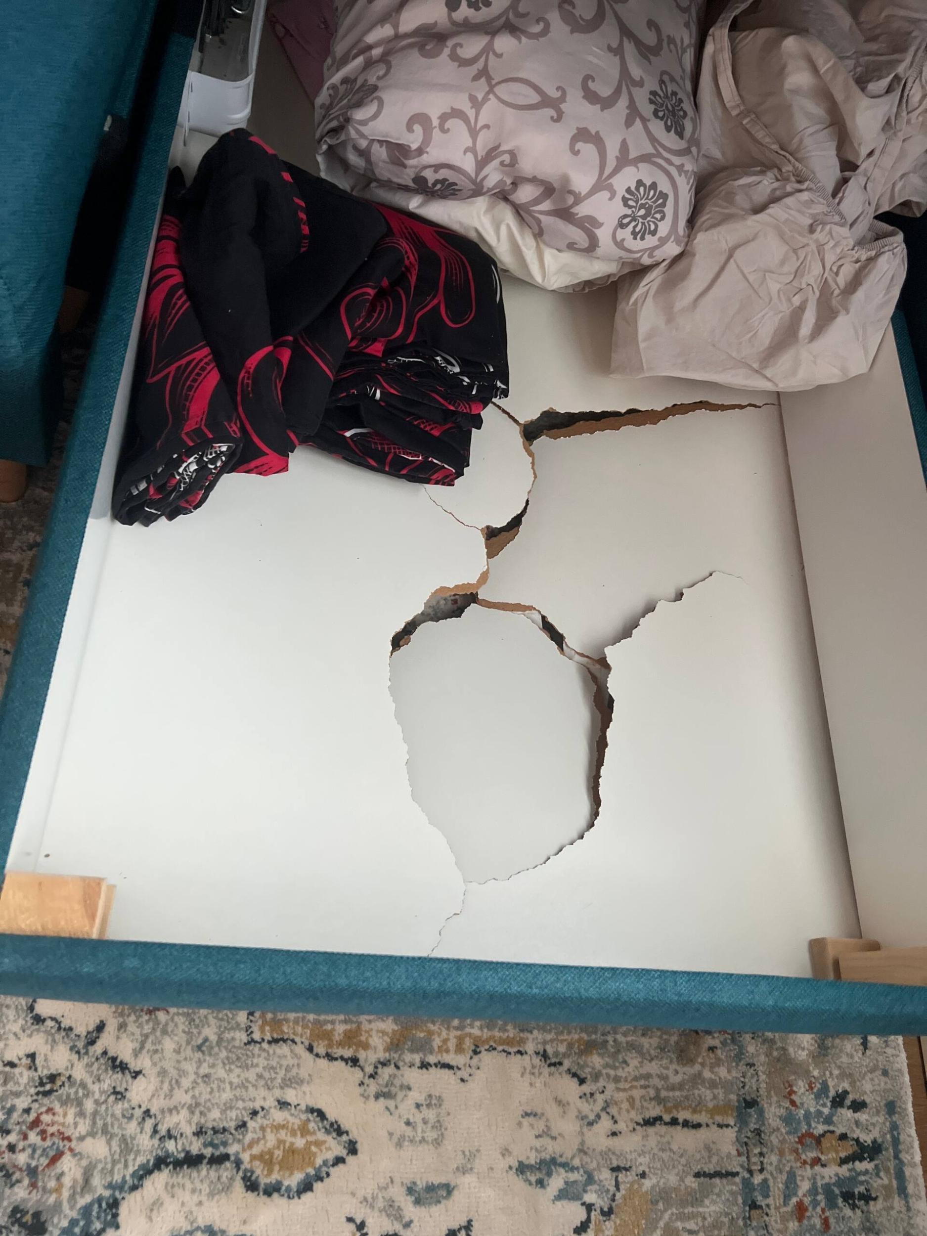 Nurgadiivanvoodil läks katki pesukasti põhi. Materjal on puitlaastplaat. Suurus 140cm x 75cm. Ei pea olema esteetiliselt super kena, aga ehk annaks põhjale uue plaadi peale panna vms, et üldmulje oleks korralik.
