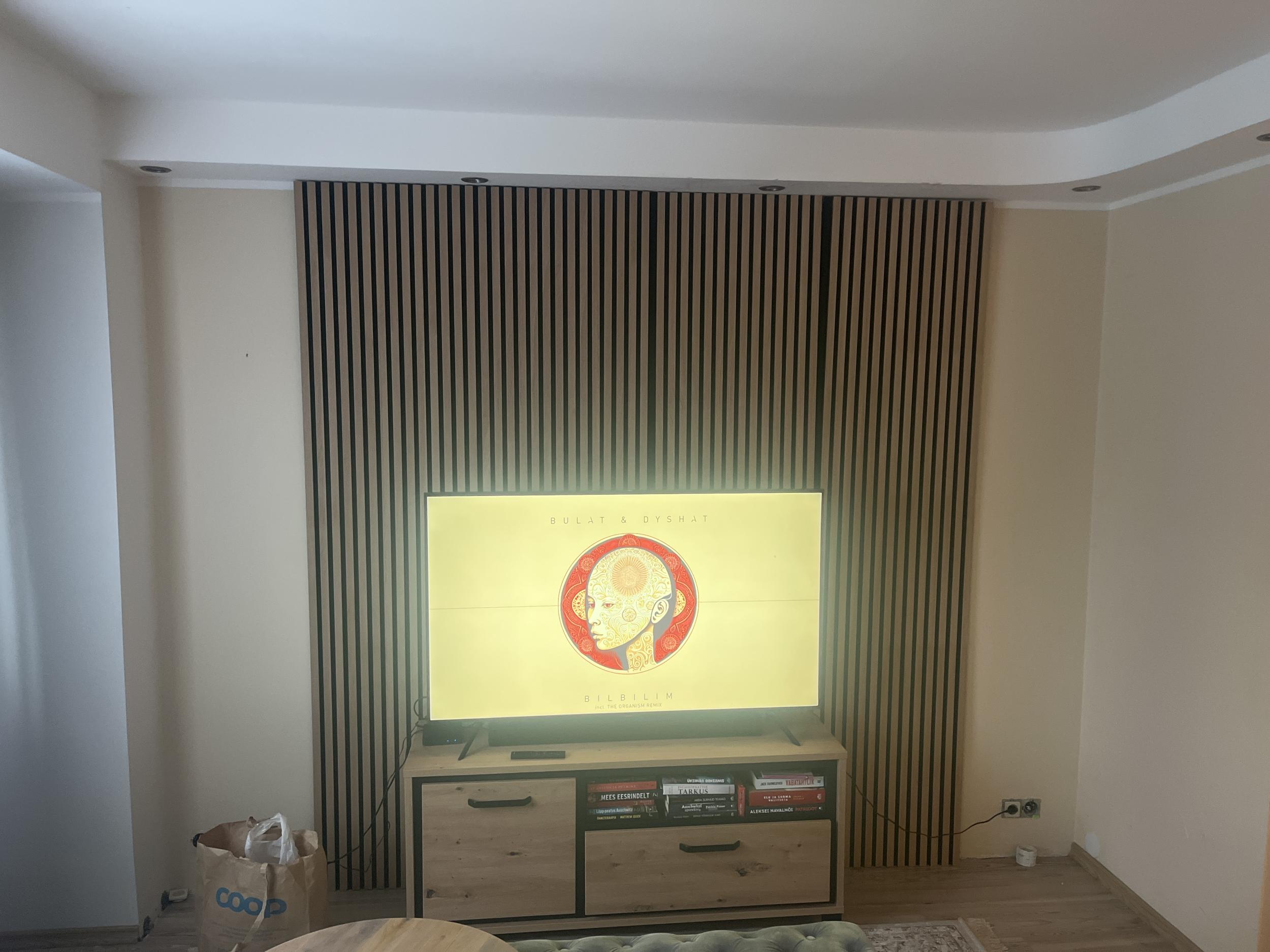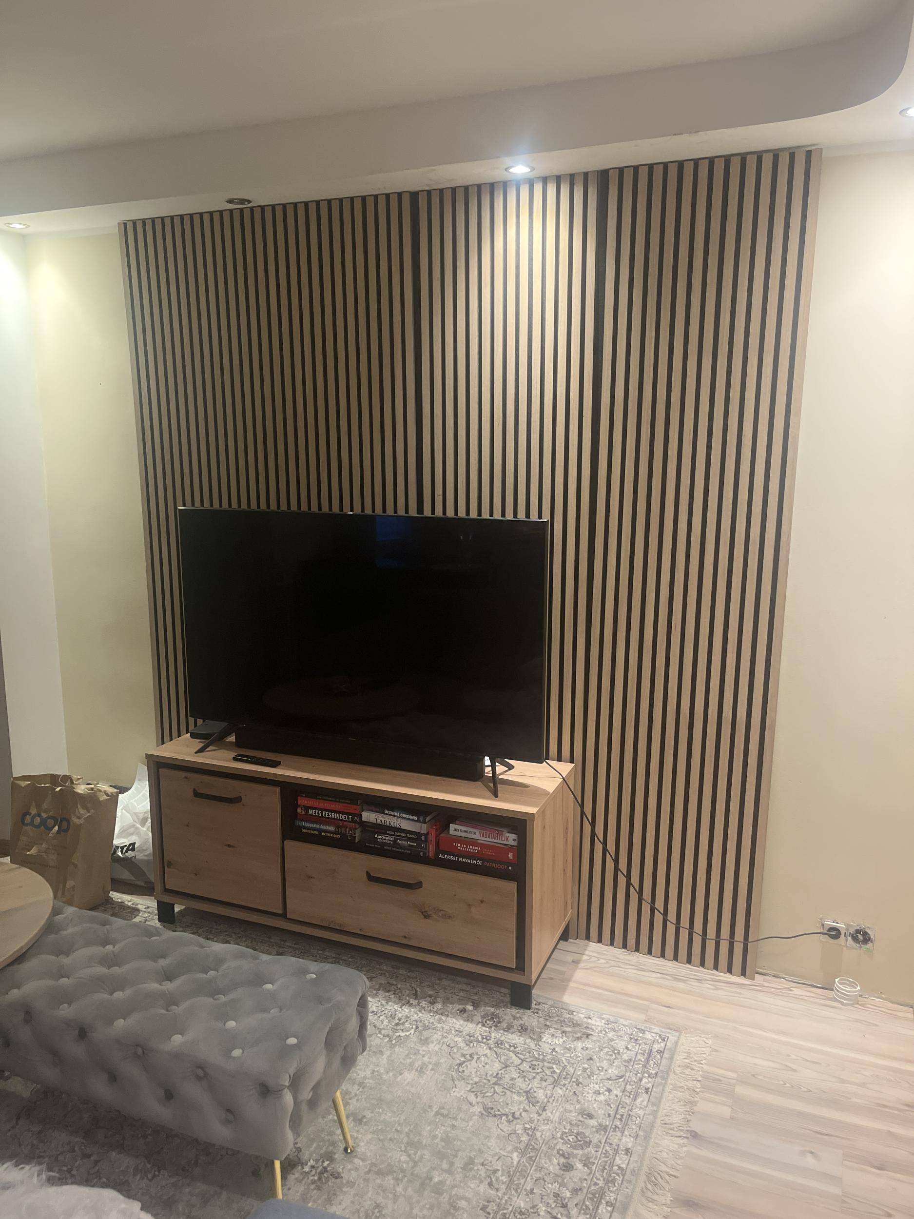 https://www.k-rauta.ee/p/dekoratiivne-akustiline-vooder-neuhofer-holz-oak-240-cm-x-57-25-cm-x-1-9-cm/pc18 (kõik vajalik paigaldamiseks olemas (muret tekitab pistikupesadele aukude freesimine/lõikamine)