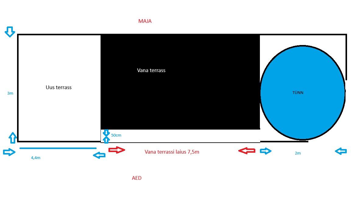 Pakkumise kirjeldus: Terrassi laienduse hind. Vajadusel võib terve terrassi ka uue teha. |