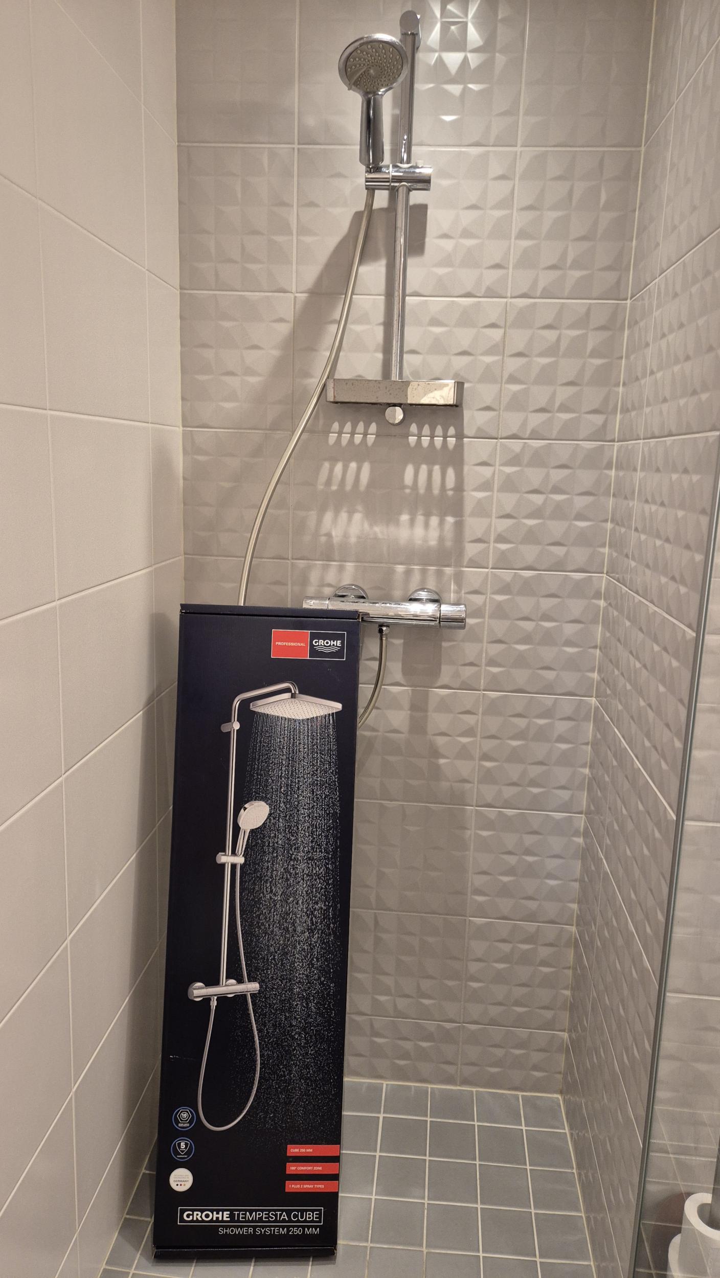Pakkumise kirjeldus: Pakkumine sisaldab, plaatide vahetust ja dussi paigaldust koos segistiga. Sisaldab ka kipsi tükki, hüdroisolatsiooni, silikooni jne. |