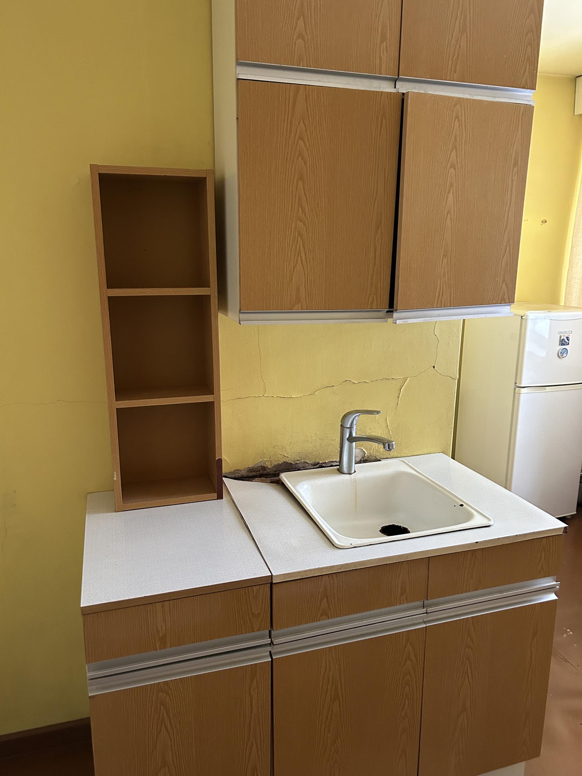 Köögi kapitaalremont. Pakkumise hinna sees vana, nõukaagse köögimööbli ja pliidi eemaldamine ja utiliseerimine, lae ja seinte värvimiseks ettevalmistus ja värvimine kliendi poolt valitud värviga. Seintes on suuremaid pragusid. Vana põranda eemaldamine, uue paigaldamine. Põranda kraanikausi aluses osas esineb umbes 1,5 m2 suurusel