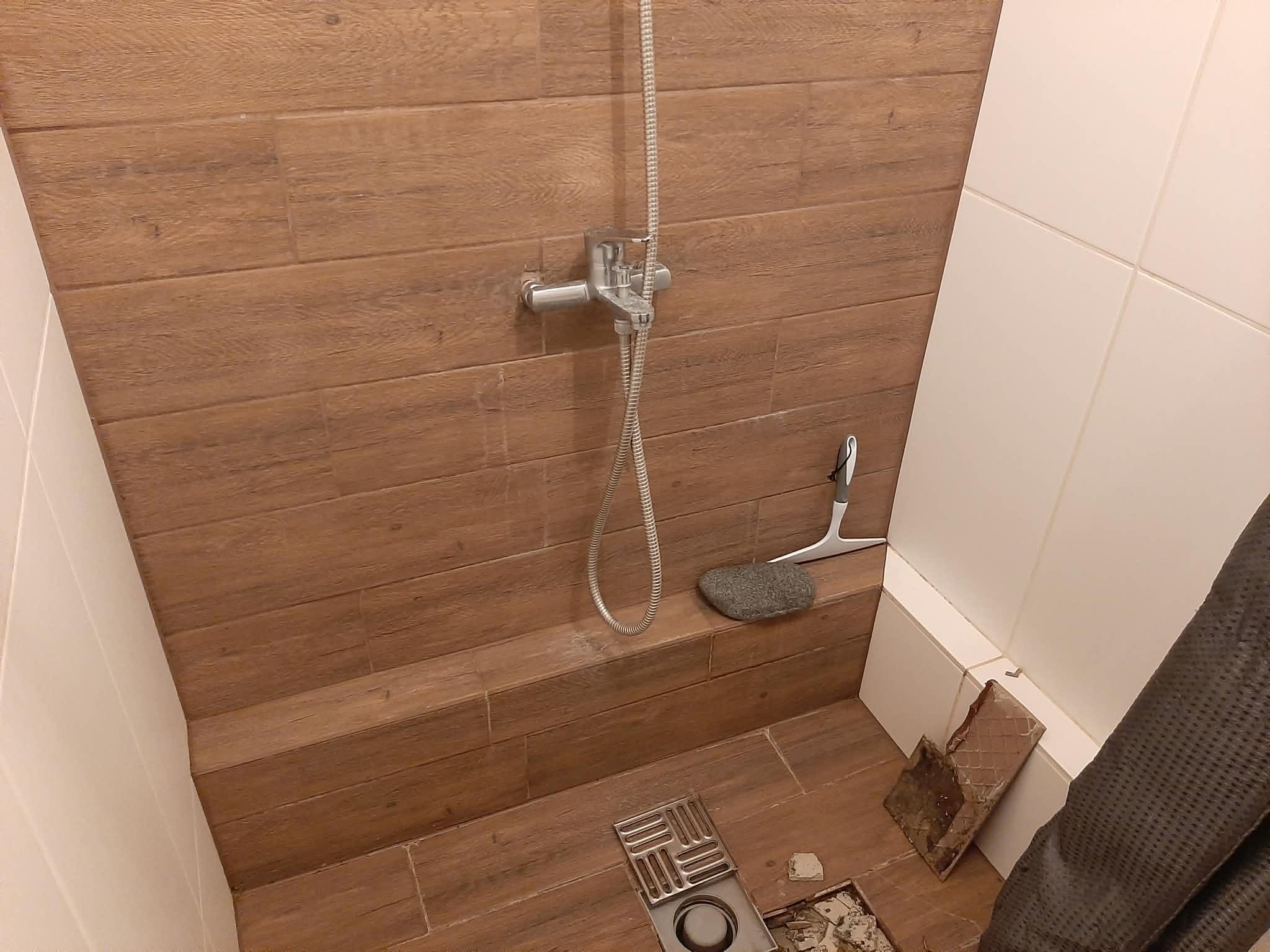 Duššialune põrand valesti ehitatud, vesi jooksis alumisele korrusele. Vaja duššialune põrand lahti võtta, valada uus alus. Viimistleda plaatidega põrand ja ilmselt ka mingi osa seinast.