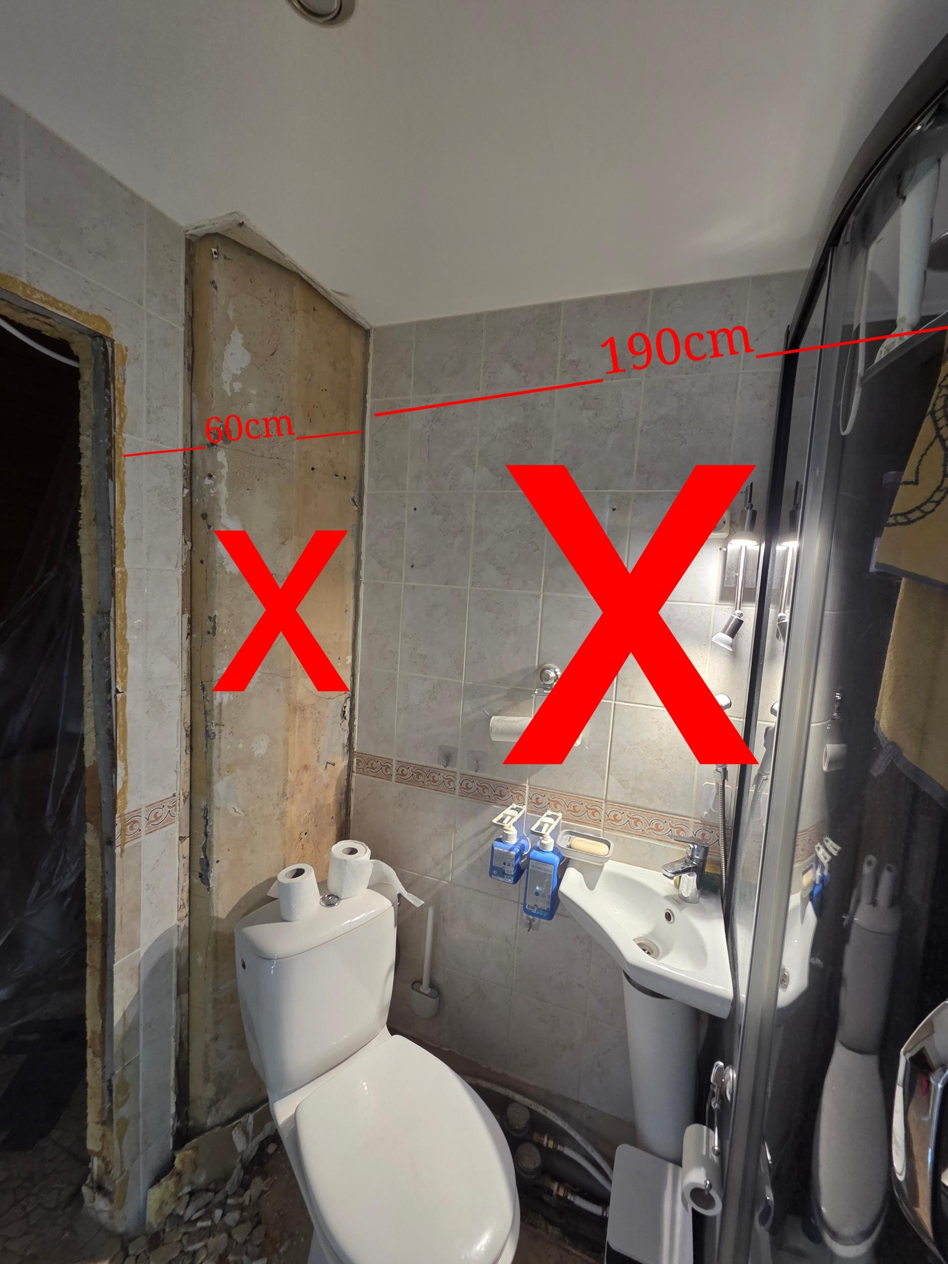 1.90x2.20m seina karbi lammutus (pildil märgitud punase x-ga)