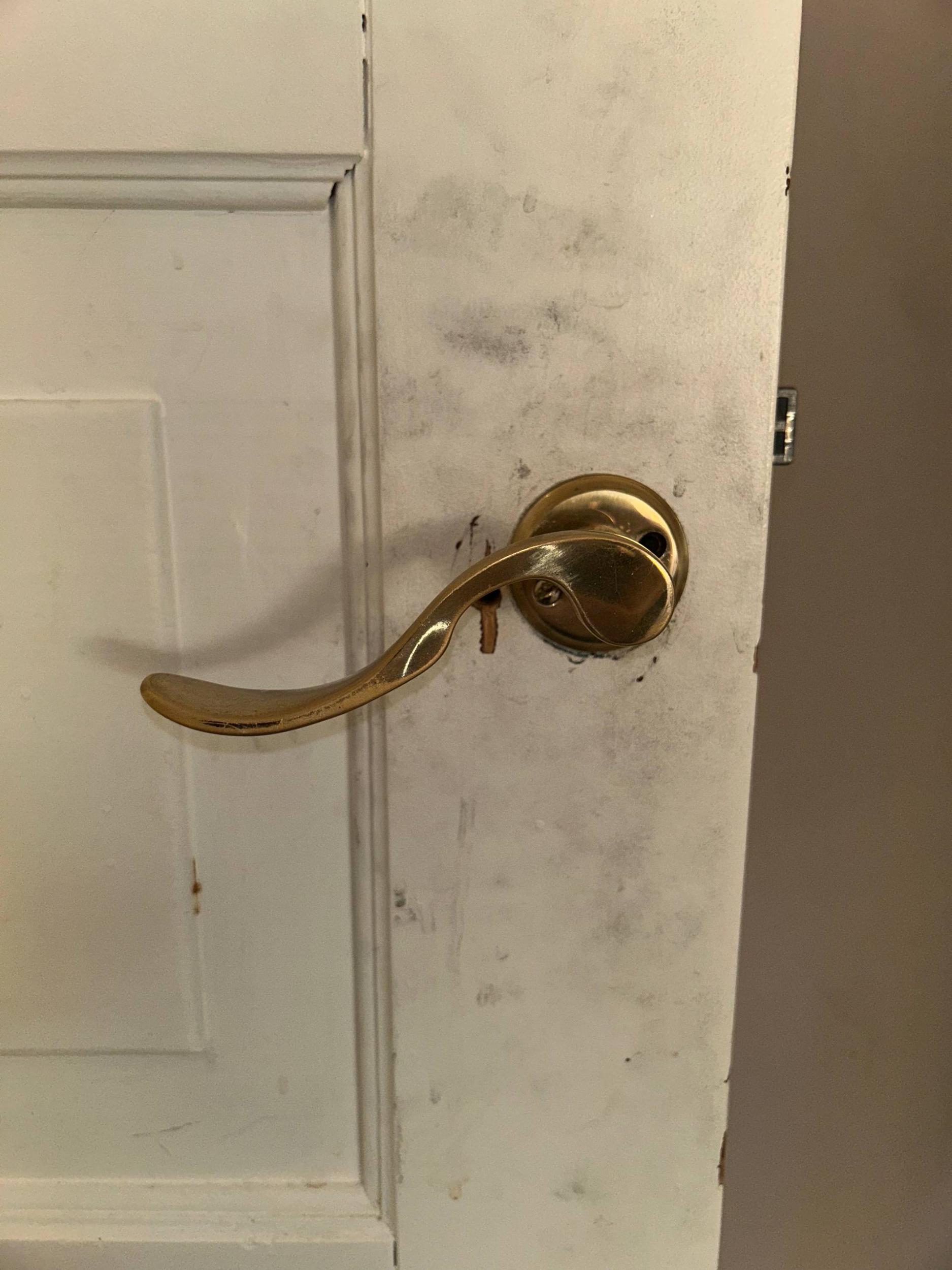 Additionally, there was an unsuccessful attempt to replace the lock previously, and the door and the door frame were damaged (therefore, the service should also include repair of the door and frame after installing the new lock it is needed).
