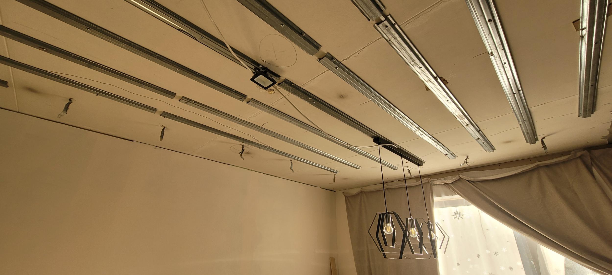 Elutoas on osaliselt metallkarkass juba olemas (kuid vale pidi, sest paneeldie suund peaks olema samamoodi nagu on põrandal oleval laminaadil). Metallkarkassi on olemas ka keldris varus.