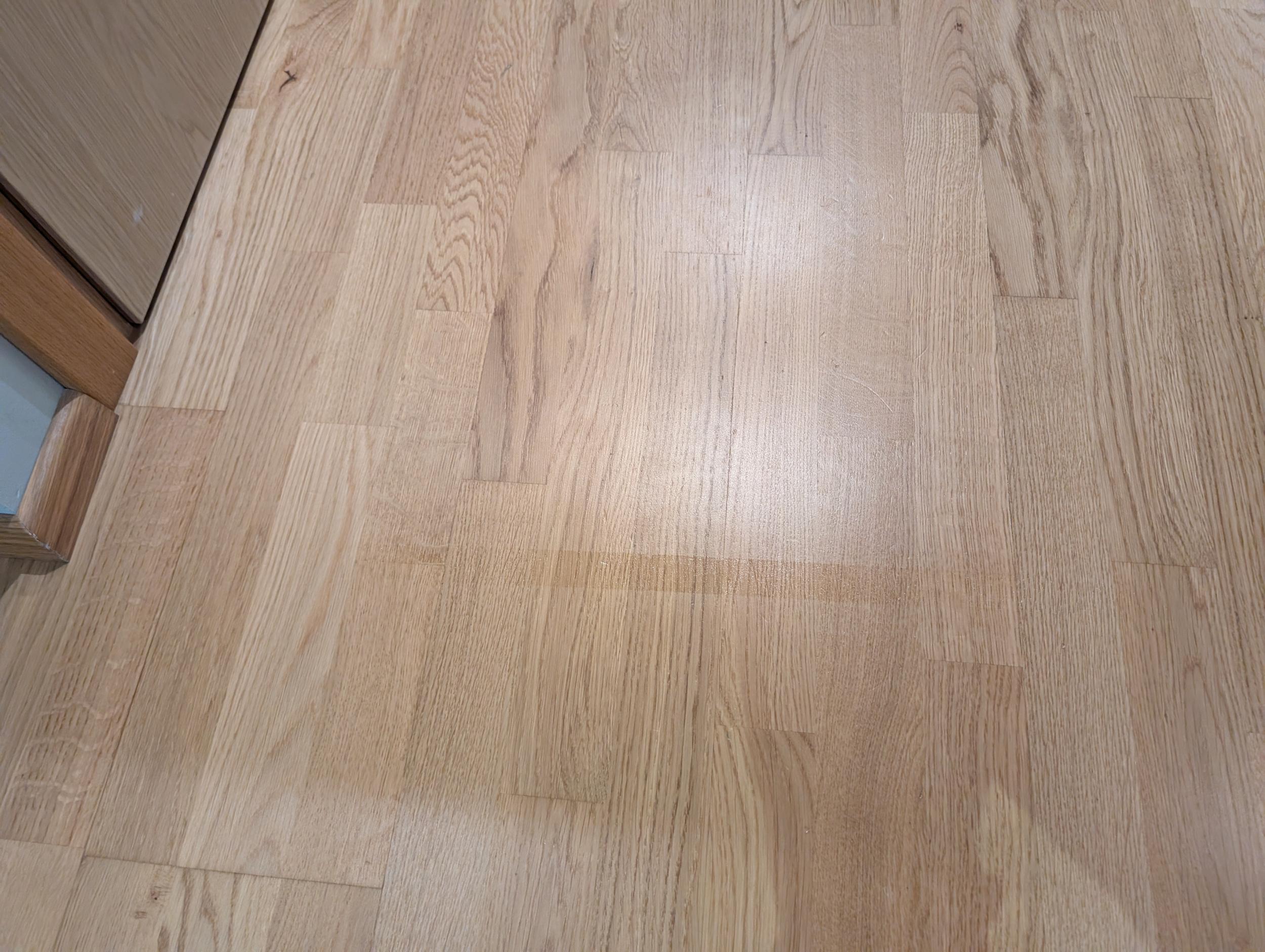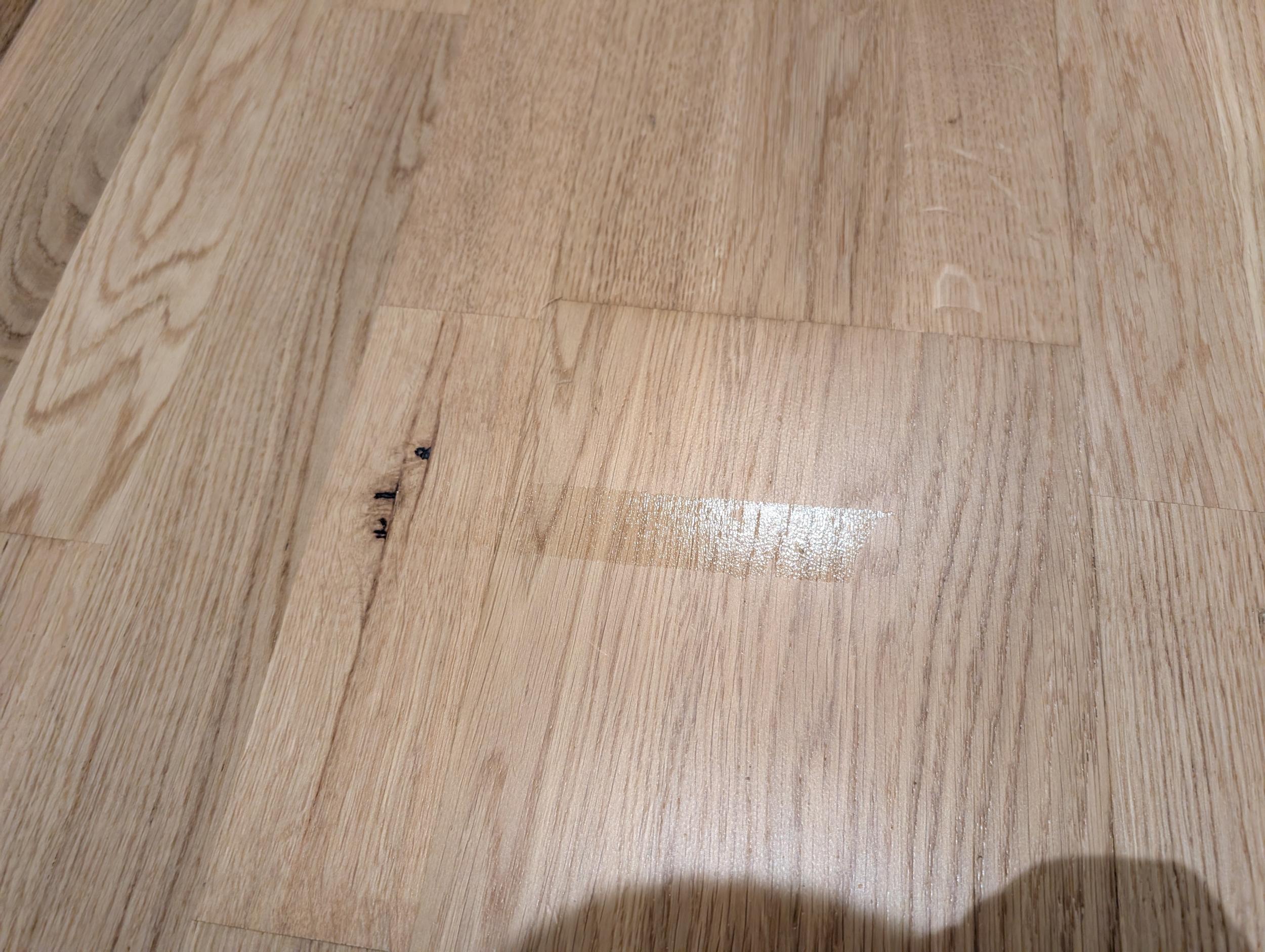 Soovime kohtparandust parketi laki kahjustuse parandamiseks. Pealmine laki kiht sai kahjustada teibi eemaldamisel.