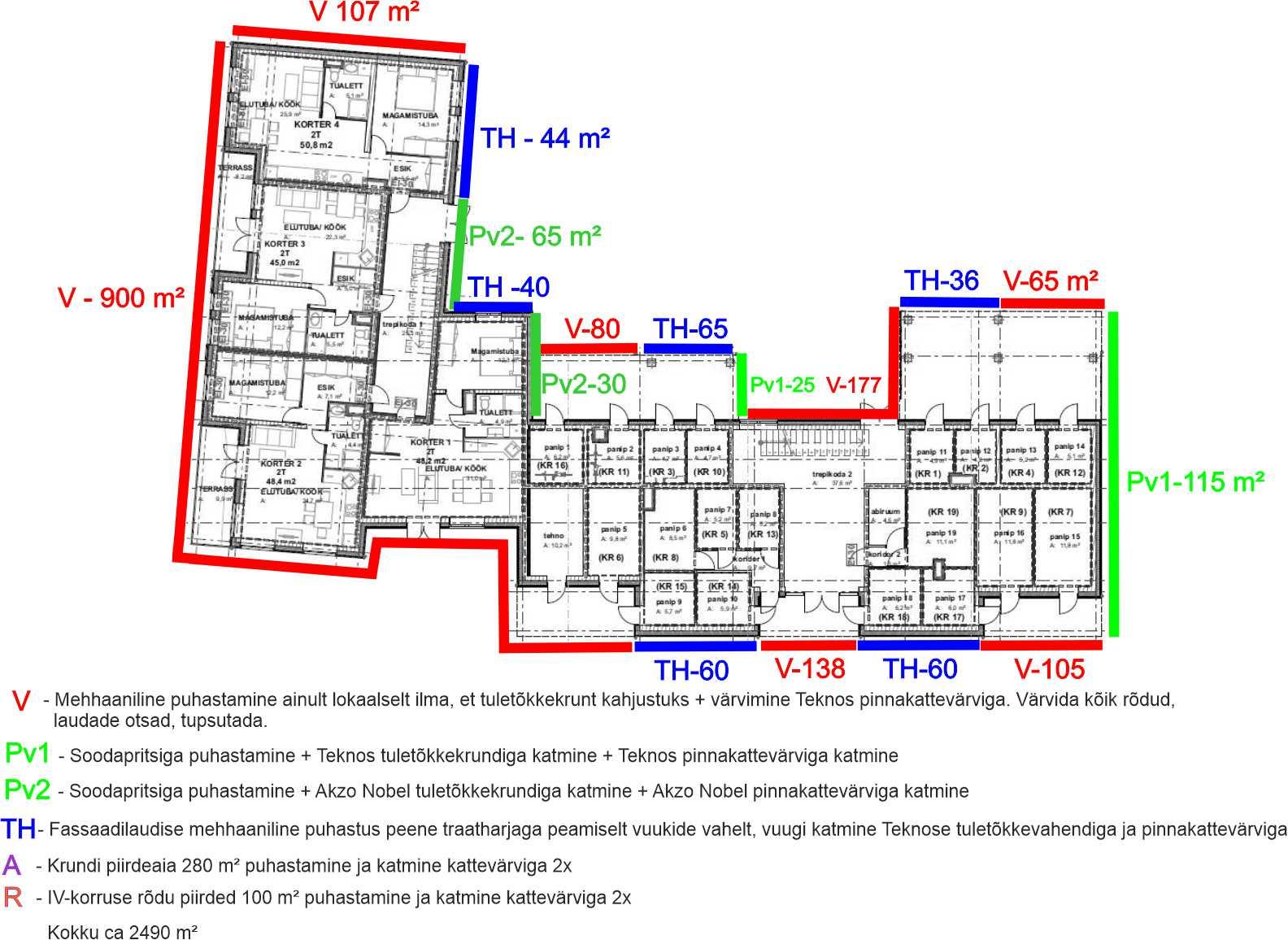 Korterelamu puitfassaadi puhastamine, karestamine, katmine tulekaitsekrundiga ja värvimine 2 kihti.
