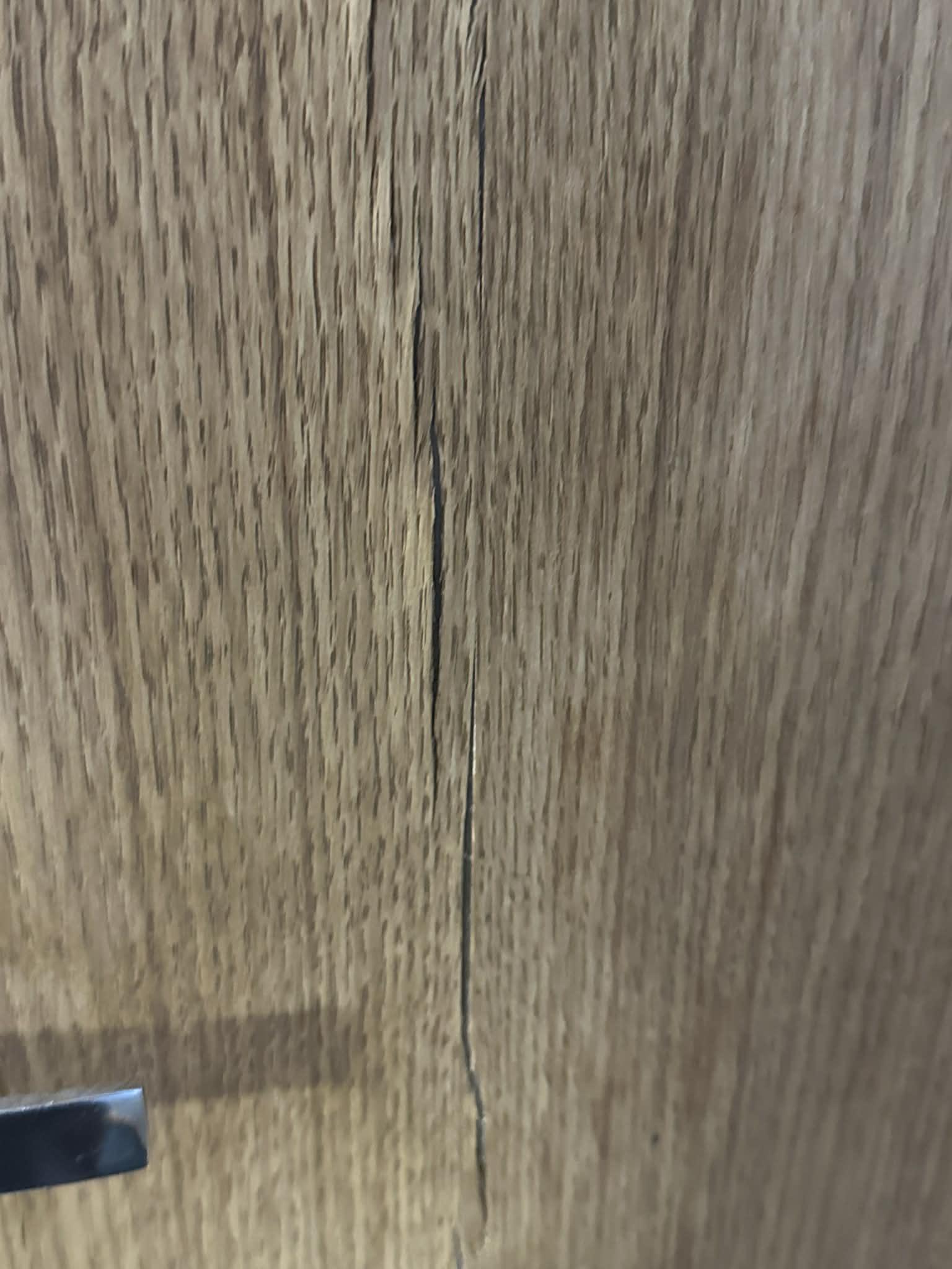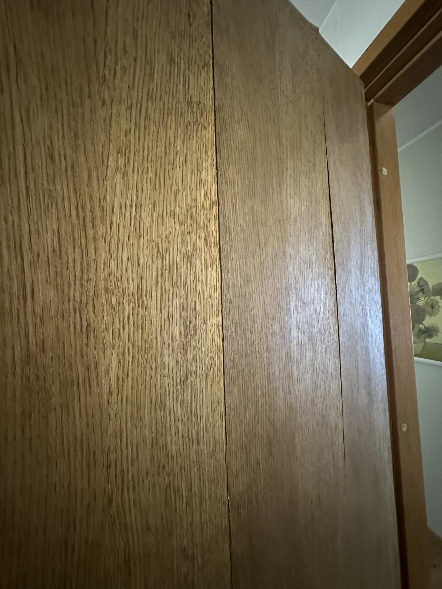 Üks ukse pool oli veid rikutud ja seda on püütud parandada viisil, mis ei olnud õige ja ukse peale pandud puiduribad hakkasid pragunema. Vaja oleks taastada uks nii, et see näeks esinduslikum välja praegusest. Ukse teine pool on korras.