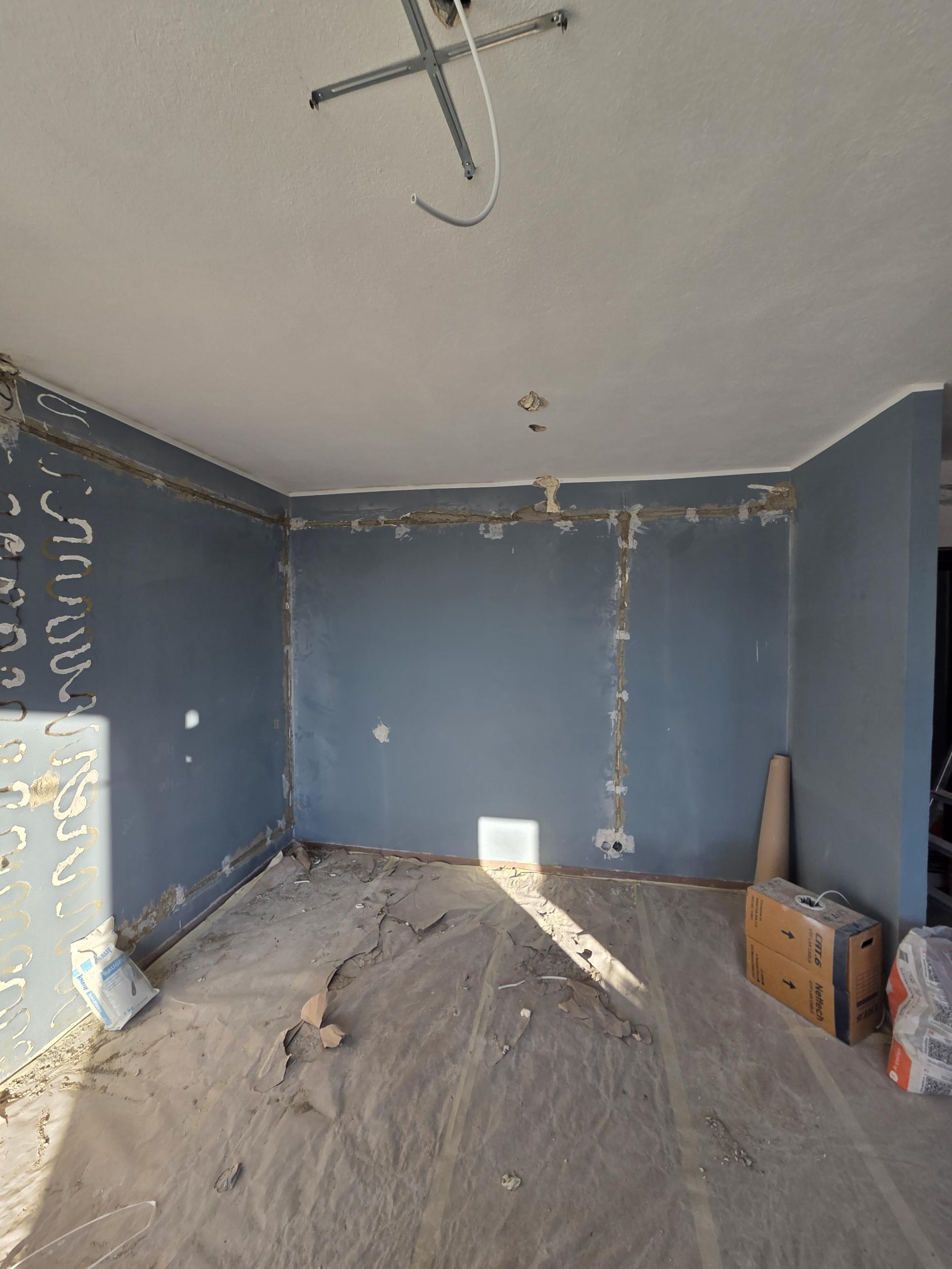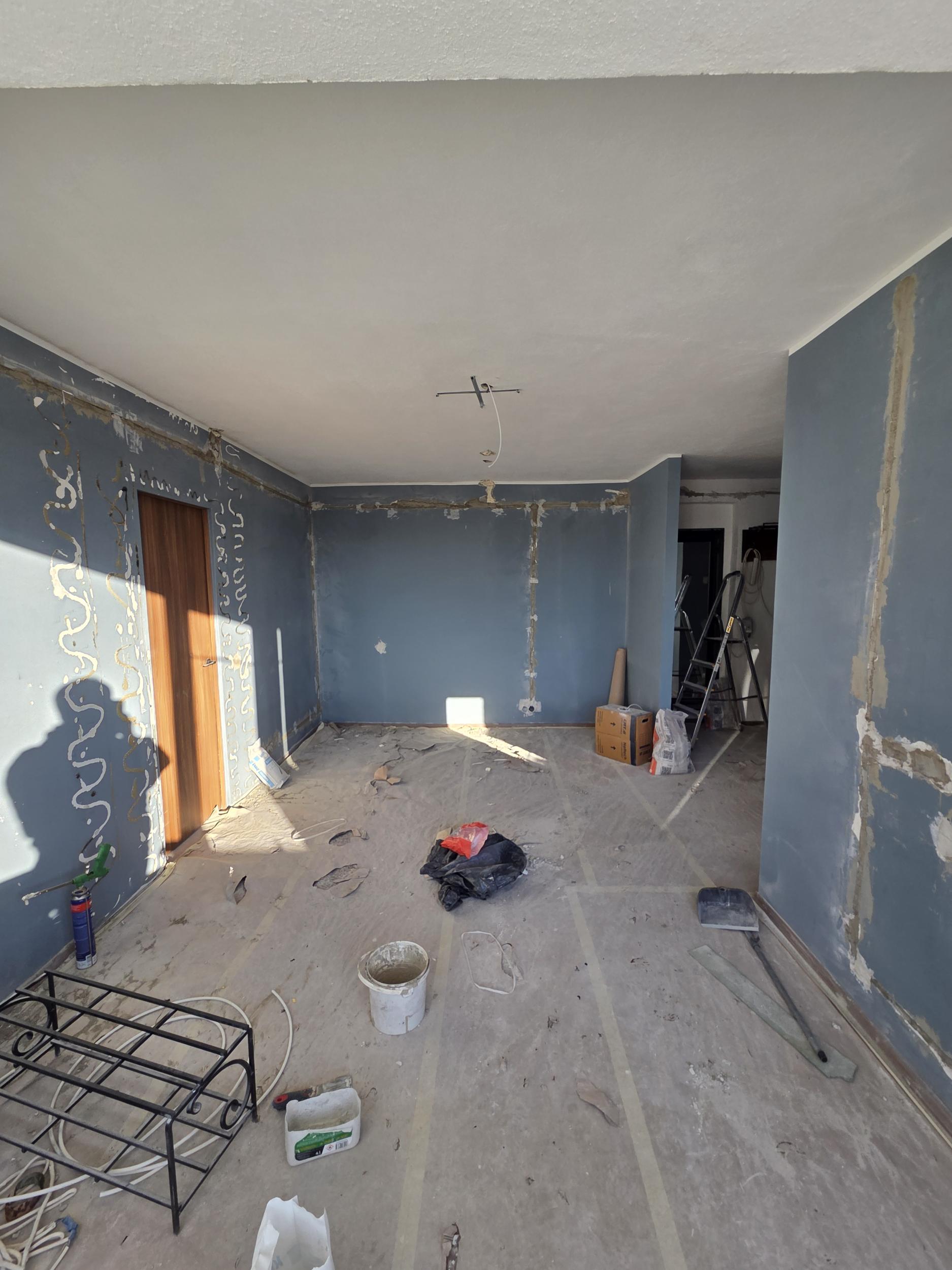 Elektritöödejärgsed siseviimistlustööd 42.6 m2 korteris, köök, WC ja esik kaasaarvatud. Lõpptulemuseks soovin värvimiseks valmis pinda.