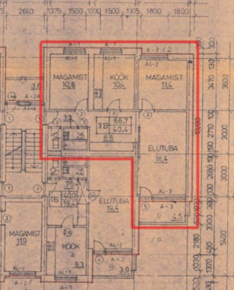Lisaks vajab soojustamist rõdu lagi 1 x 100 EPS plaadi ja kattematerjaliga(joonisel punase kastiga ümbritsetud korteri kõrval suurusega ca 6 m2).