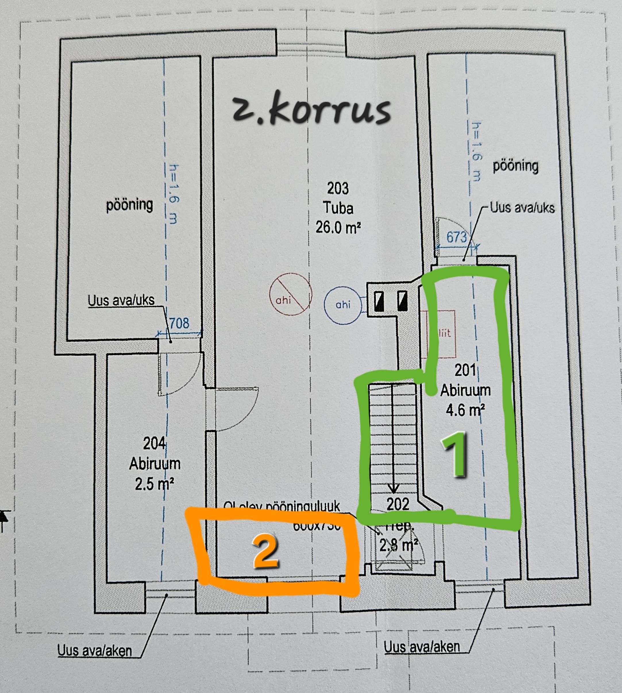 Vana trepikoja kinni ehitamine ja üles selle kohale vannitoa ehitamise võimalikkus.