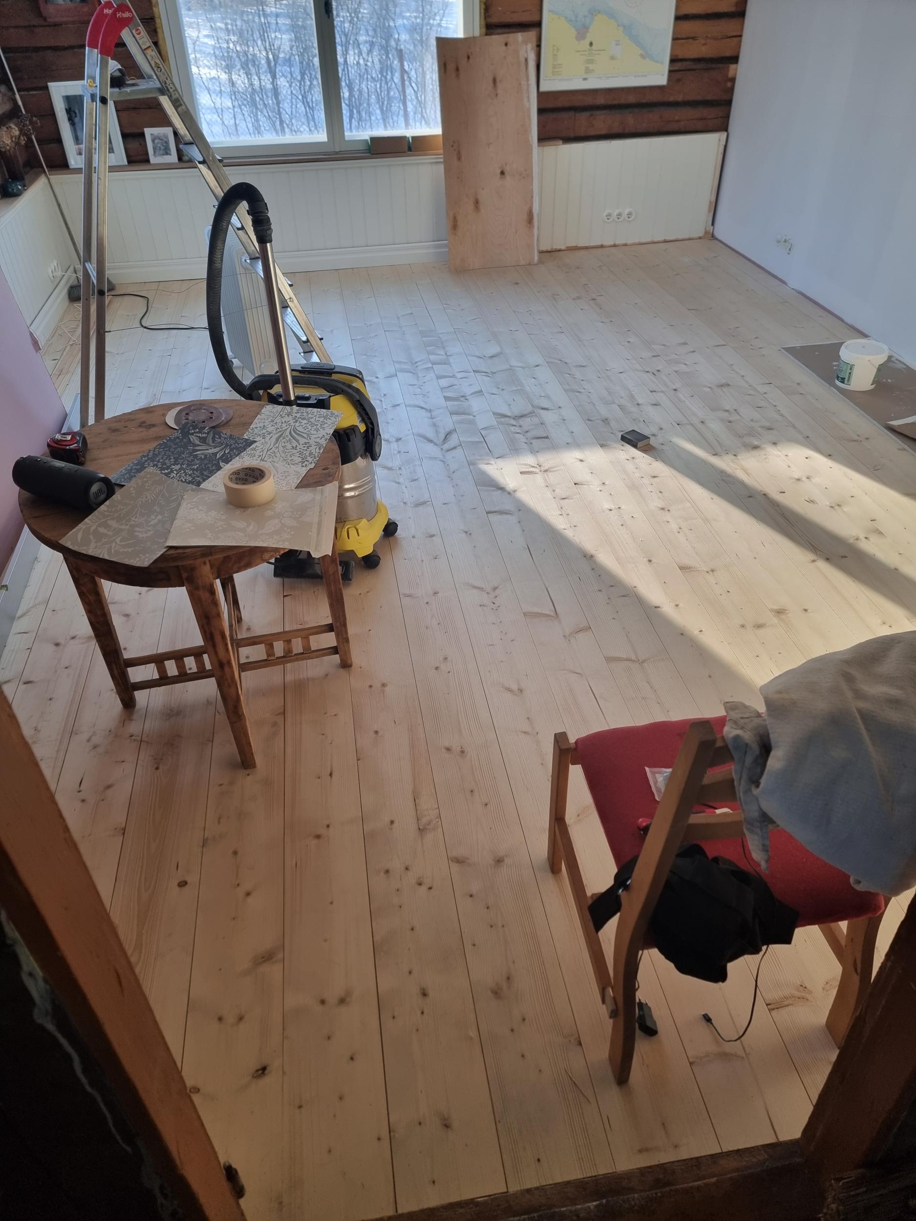 Soovin pakkumisi põrandate tolmuvabaks lihvimiseks. Kahes toas on kuuse põrandalauad 33x195 ja köögis 40x245 faasitud külgedega aga samuti kuusk. Põrandad on töötlemata ja kohati määrdunud ja pleekinud. Ühes toas põrandat otse jätkatud ja üleminek veidi ebaühtlane. Ruutmeetreid kokku kolme toa peale umbes-täpselt 64m2. Objektil olemas wc, kõigis tubades elekter (köögis küll vaid üks pistik, aga olemas 2,5mm2 juhtmega pikendus ja vajadusel ka tööstusvoolu pikendus eeskojast). Mainin ka ära, et maja ukseni hetkel lume tõttu tavalise autoga pigem ei saa, džiibiga saaks. Auto saab jätta 38m maja uksest.