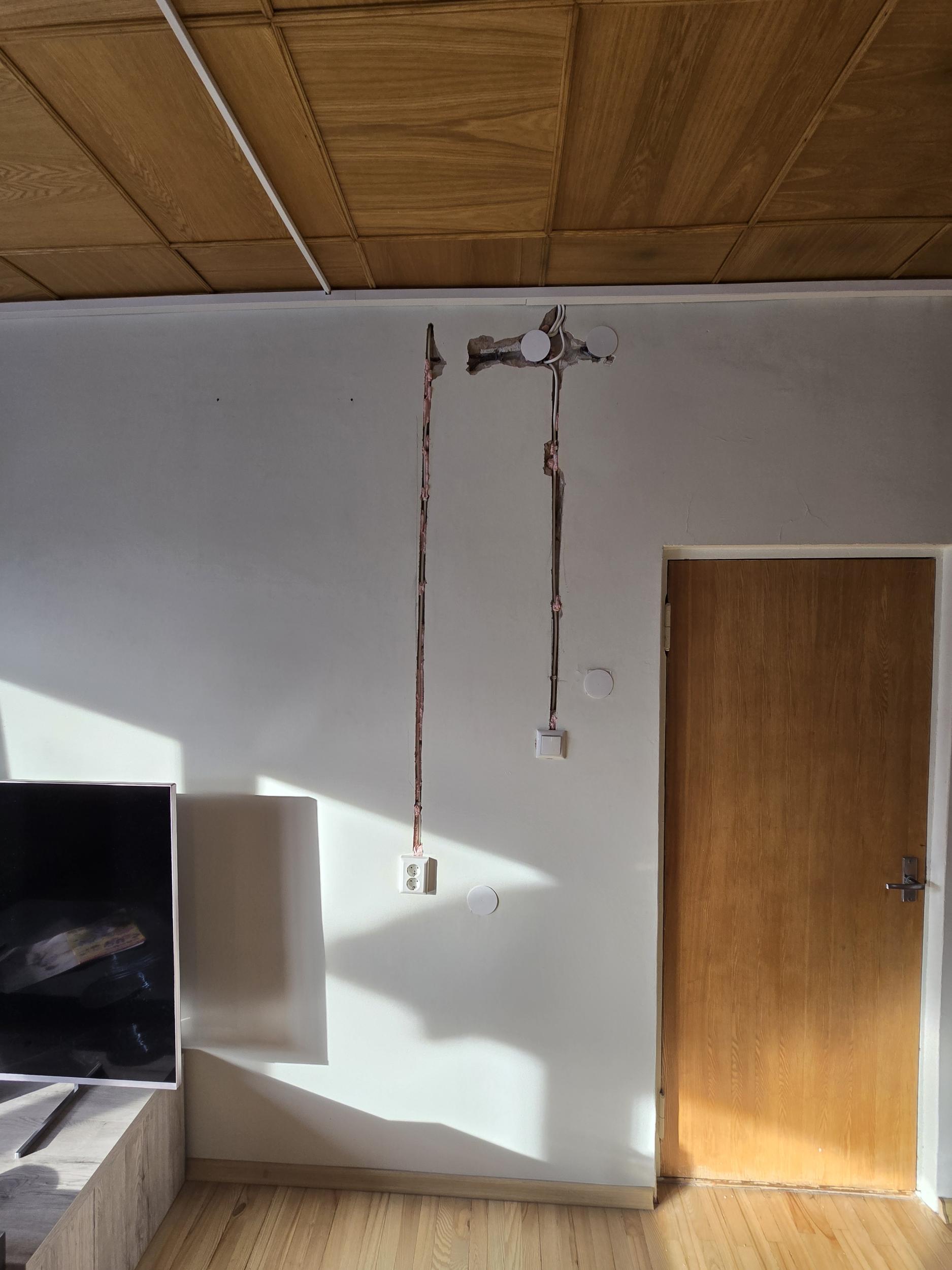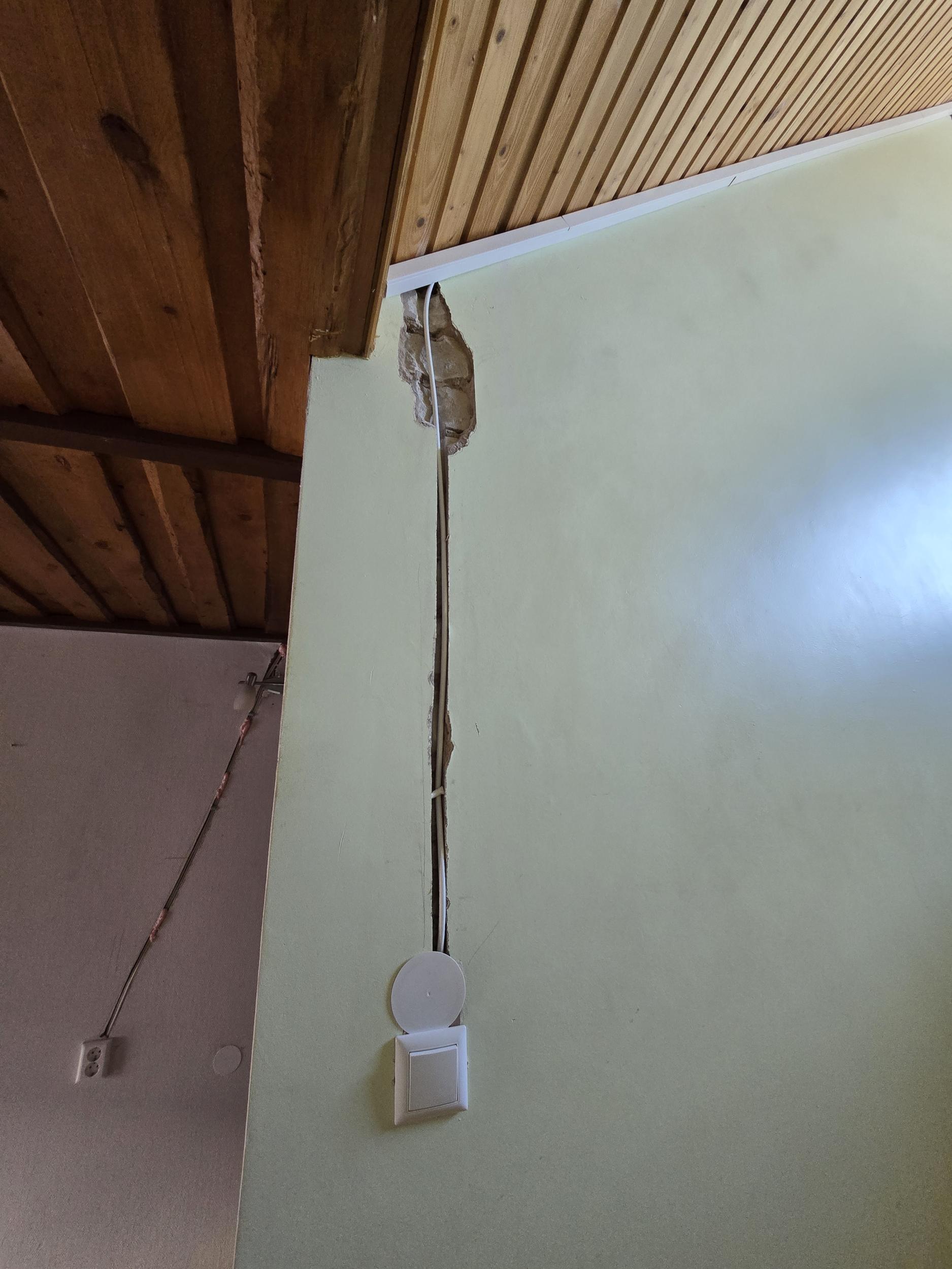 10) Kogu majas on teostatud elektrijuhtmestiku vahetus. Seinte sisse on enamikes kohtades freesitud, lae all jooksevad juhtmed karbikutes.