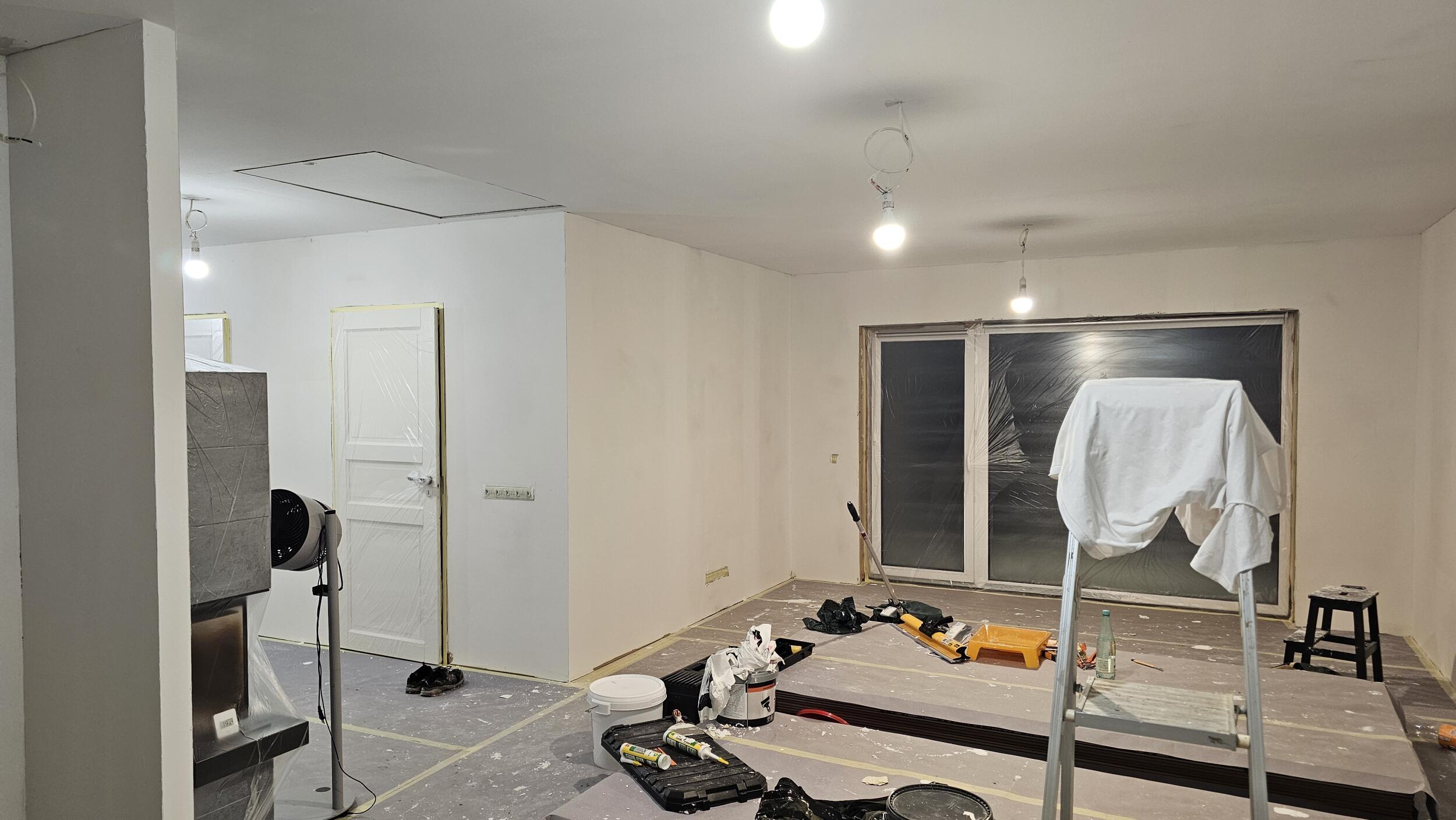 Soovin tellida poolelijäänud pahteldustöö lõpetamise, et viia ruum värvimisvalmis seisu: teine kiht pahtlit, lihvimine, akrüülimine, kruntvärv.