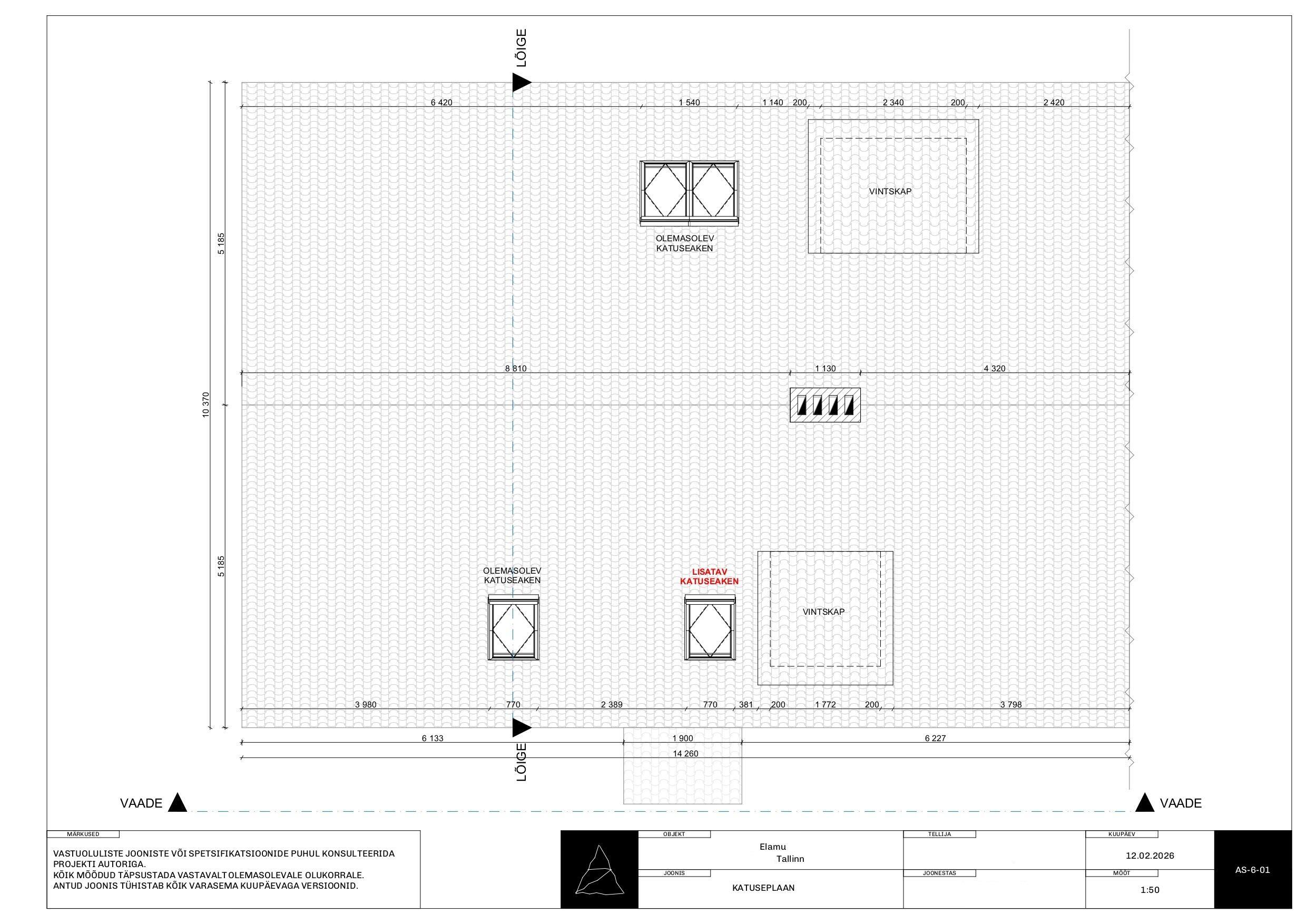 Pakkumises arvestada ka kõigi tööks vajalike materjalidega, va katuseaken, mille tellija korraldab ise objektile.