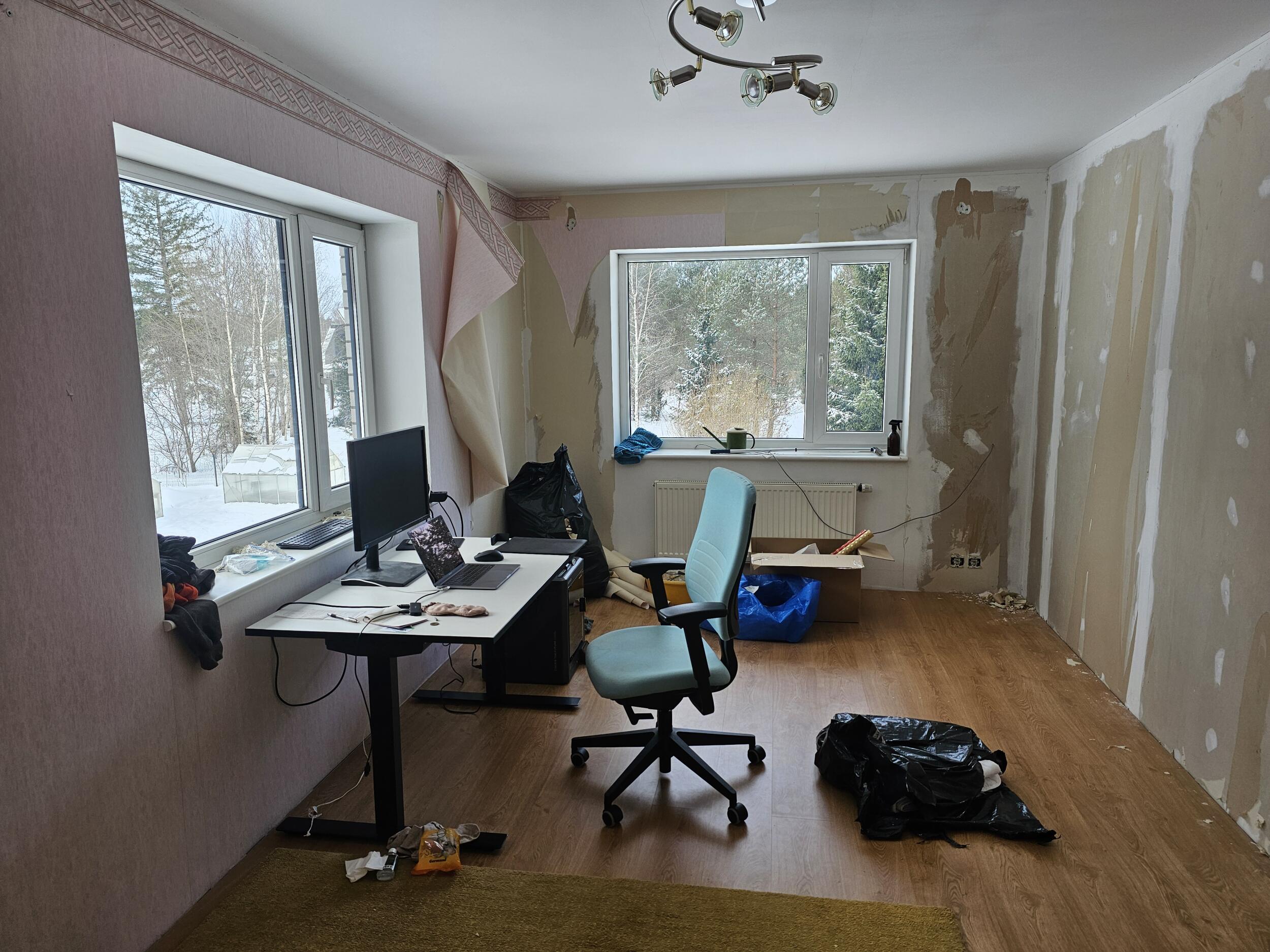 Ruumidest on tööde alguseks eemaldatud kogu tapeet, põrand, liistud, valgustus ja mööbel. Mõlemas ruumis seinal radiaator - need jäävad seina. Radiaatori servade tagant võiks värvida, kuid päris tagant pole seda vaja teha.