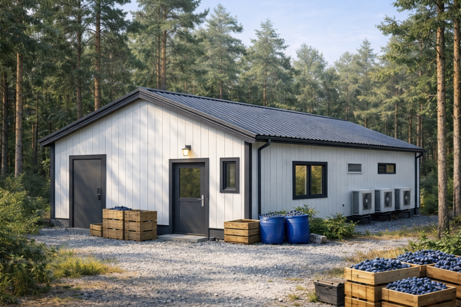 Otstarve: Mustikafarmi abihoone. Ruumi funktsioonid: külmkamber(eraldi tellitud), riietusruum, WC, dušš, väike köök.