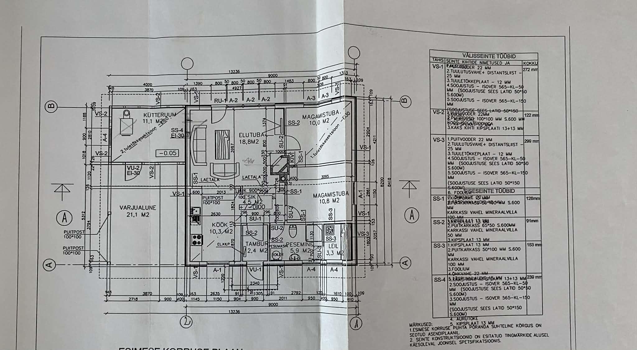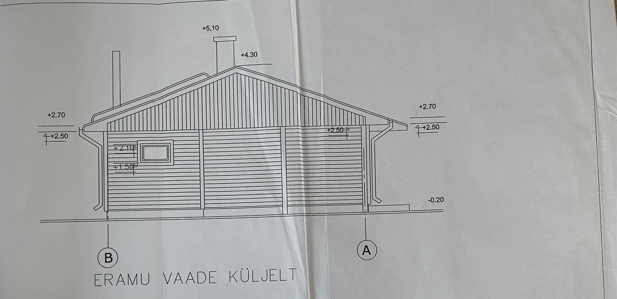 Olemasolev olukord: Hoone lääneküljel asub avatud varjualune (21,1 m²). Üks külg (kütteruumi sein) on juba suletud. Olemas on paberil põhiplaan (foto manuses).