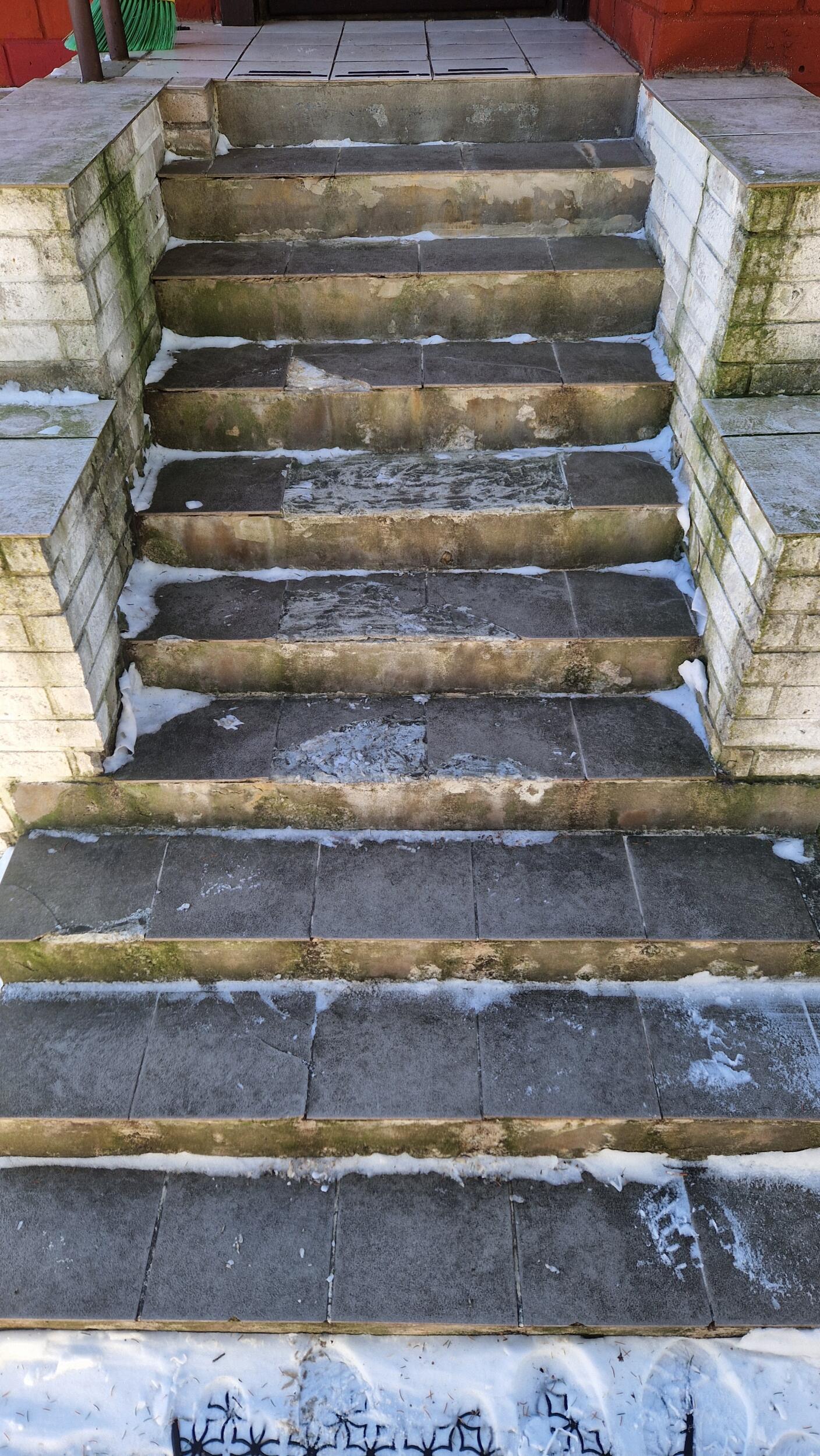 Vaja oleks välistrepp remontida, kuid mitte plaatida, vaid valada-betoneerida vms, et ei oleks libe ja et vesi sisse ei imbuks. Praegu plaadid katki ja lahti. Need võtan ise enne tööde algust ära. Ja töö peaks toimuma 7.mail.