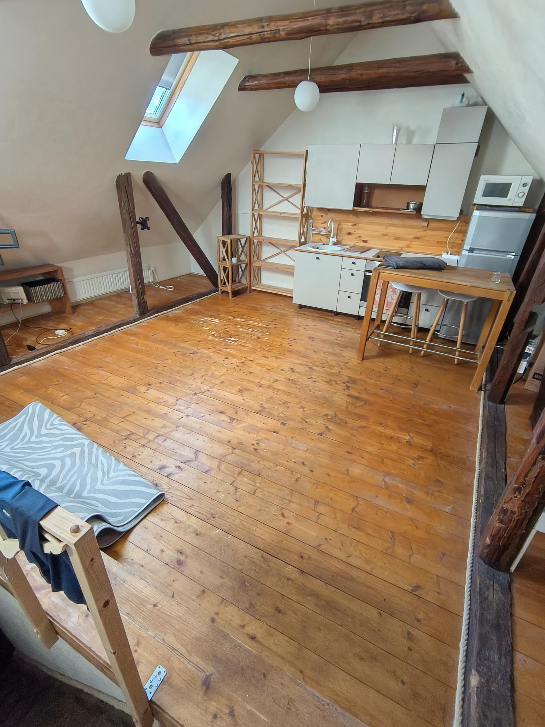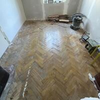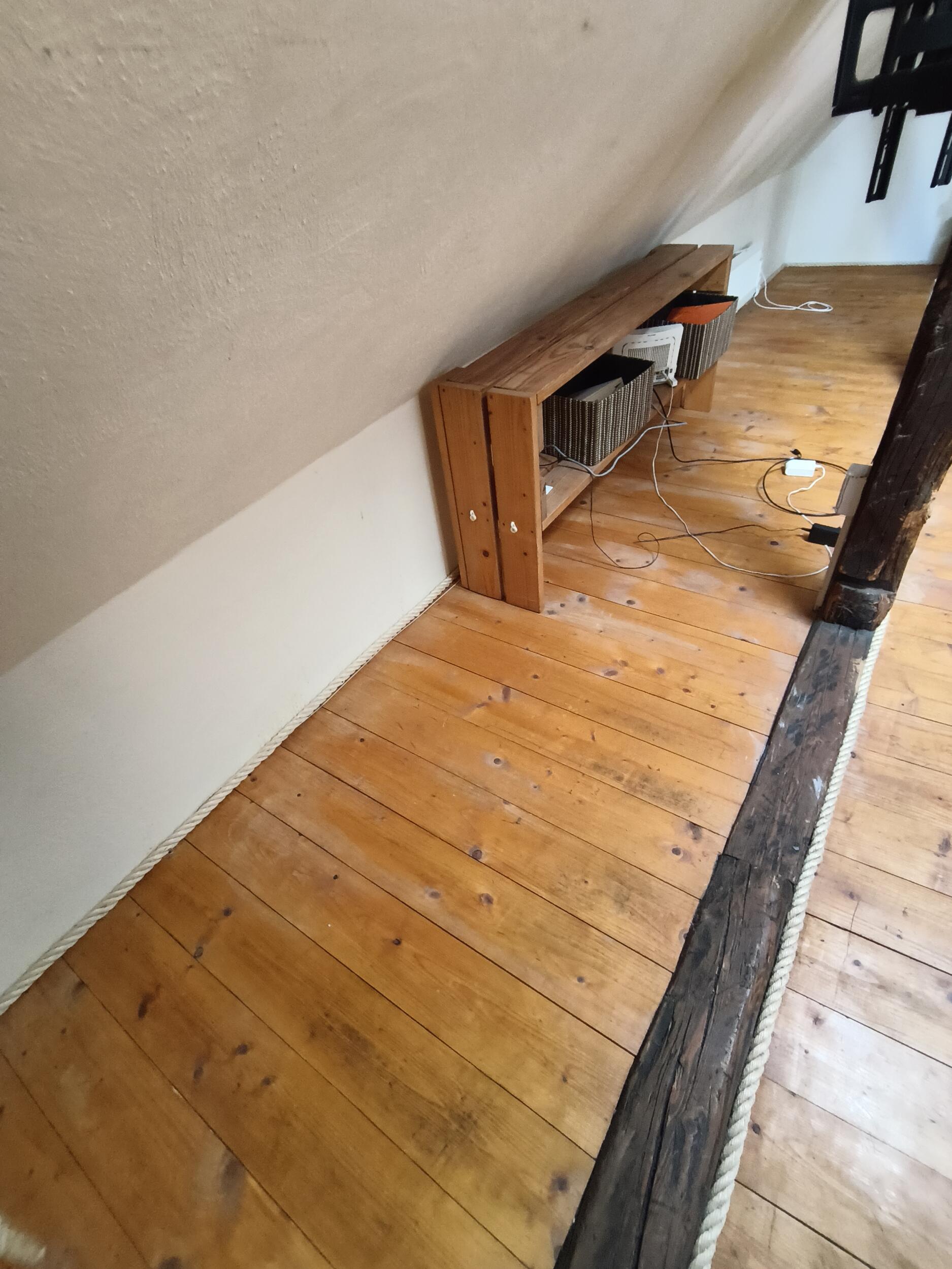 Toa põranda pindala on ligemale 20 m2. Pildil nähtav toa keskmises segmendis tagaosas paiknev põranda defekt on ainuke suurem. Vajalik on ka tekkinud/olemasolevate vahede täitmine, muu korteri lihvimispuru eest kaitse ja hilisem koristamine ning köisliistude eemaldamine ning hilisem tagasi panemine.