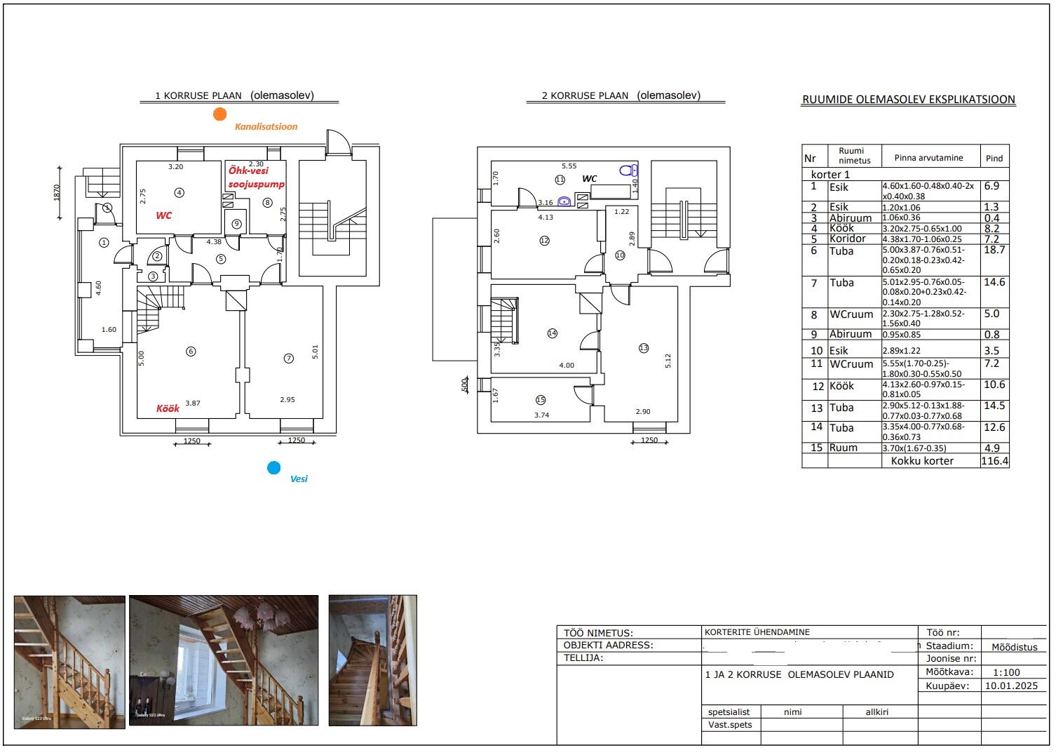 Muudatuste kirjeldus: Plaanis õhk-vesi küttesüsteemi kasutamine ning köögi ja vannitoa paigalduse muutmine.