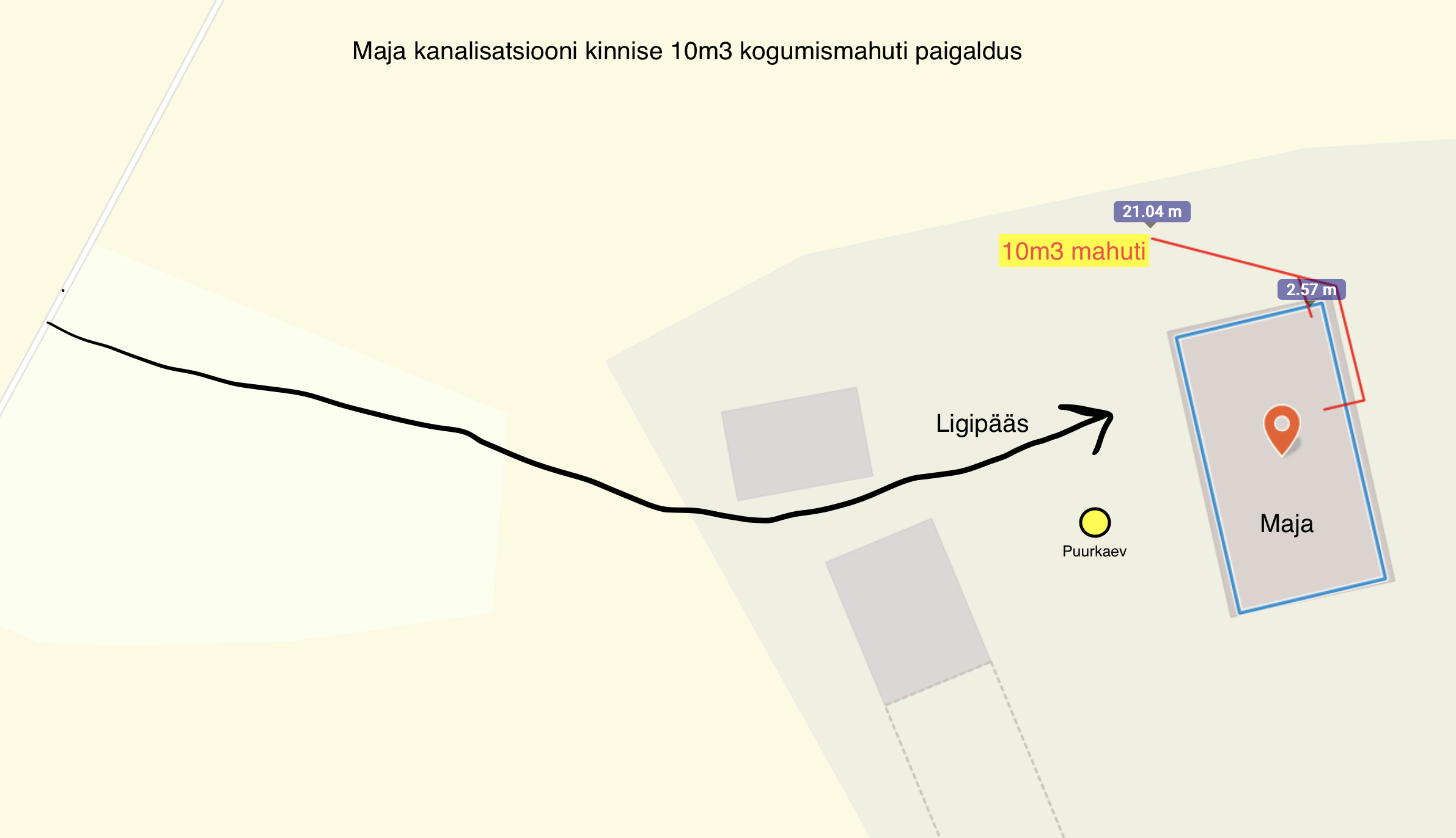 Kanalisatsioonitoru pikkus majast mahutini ~17 m.
