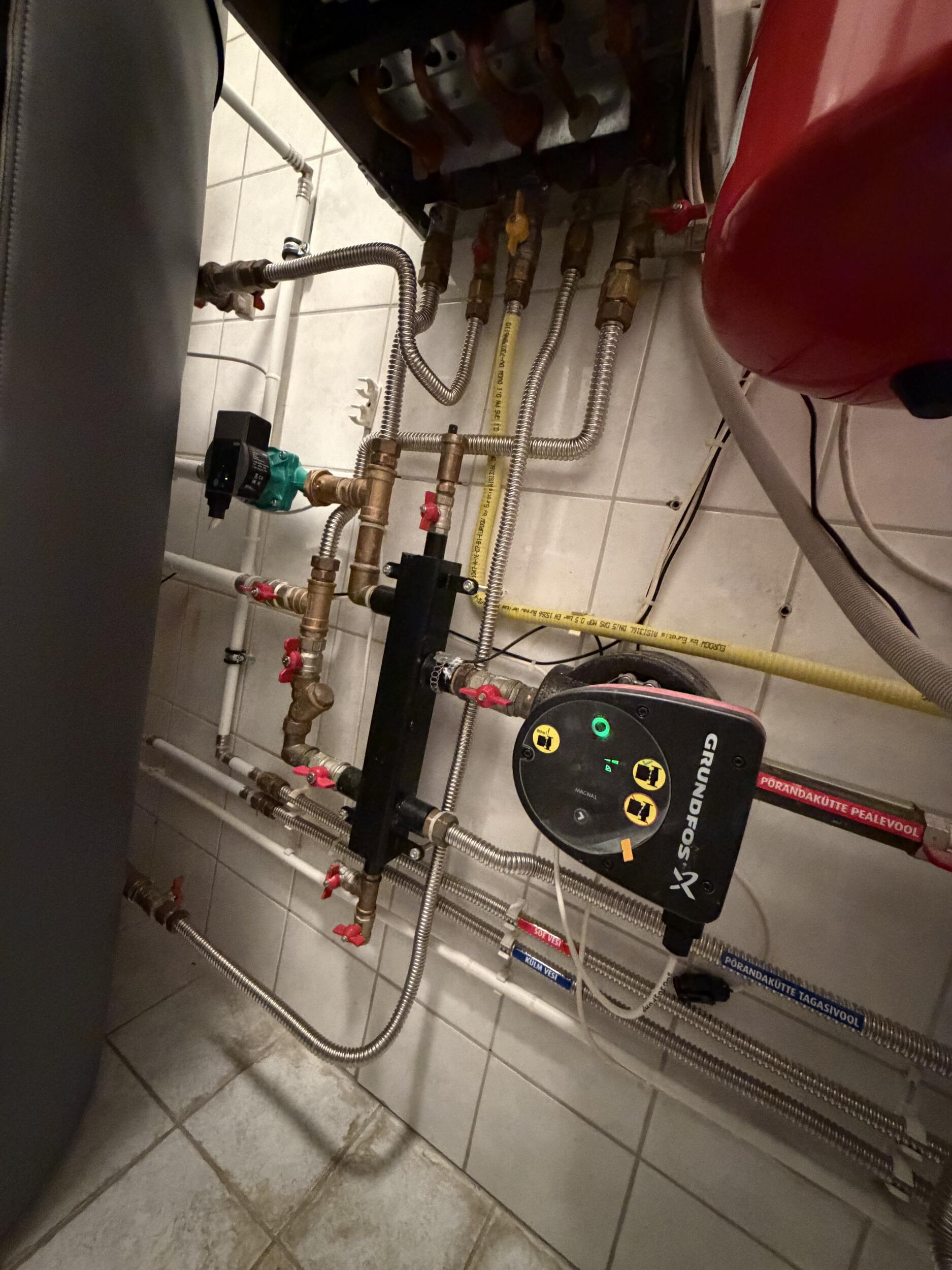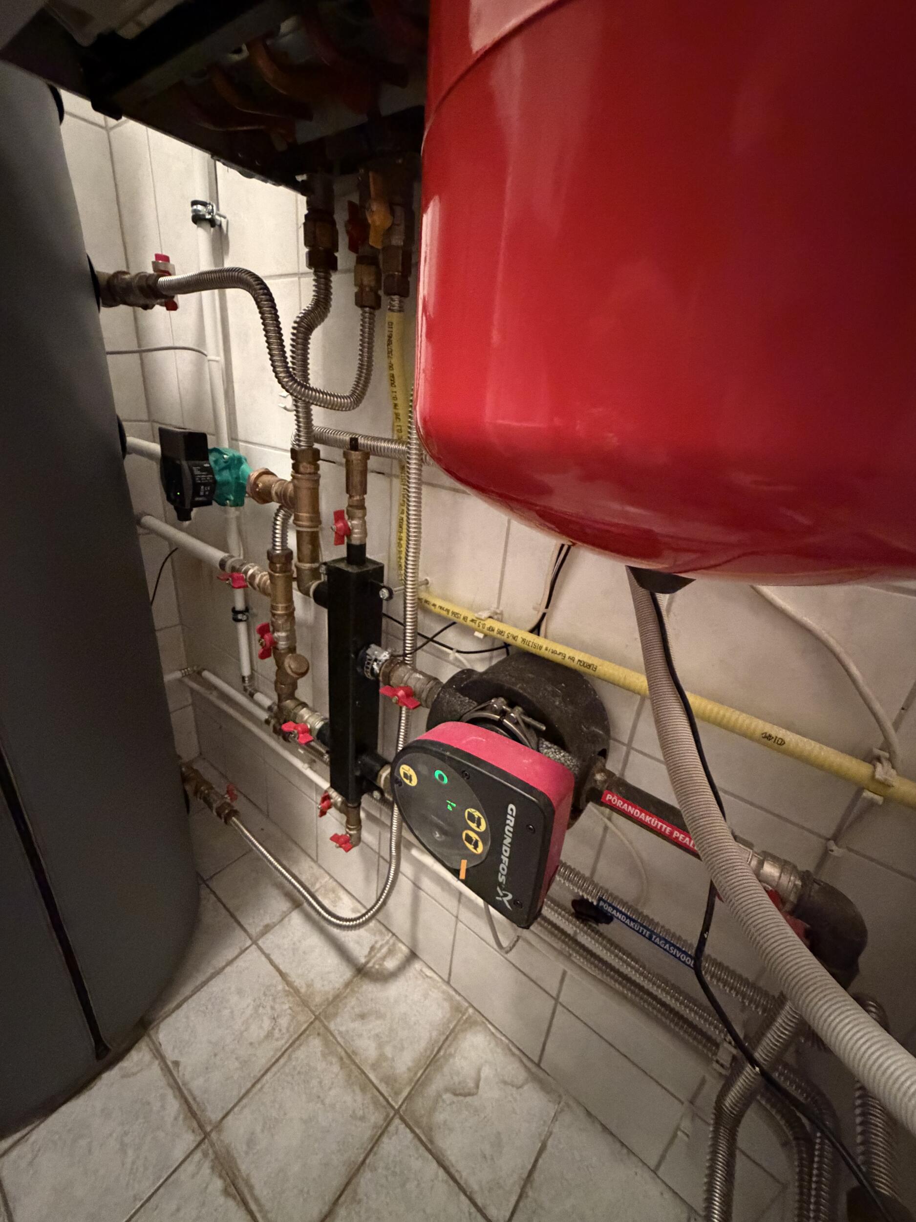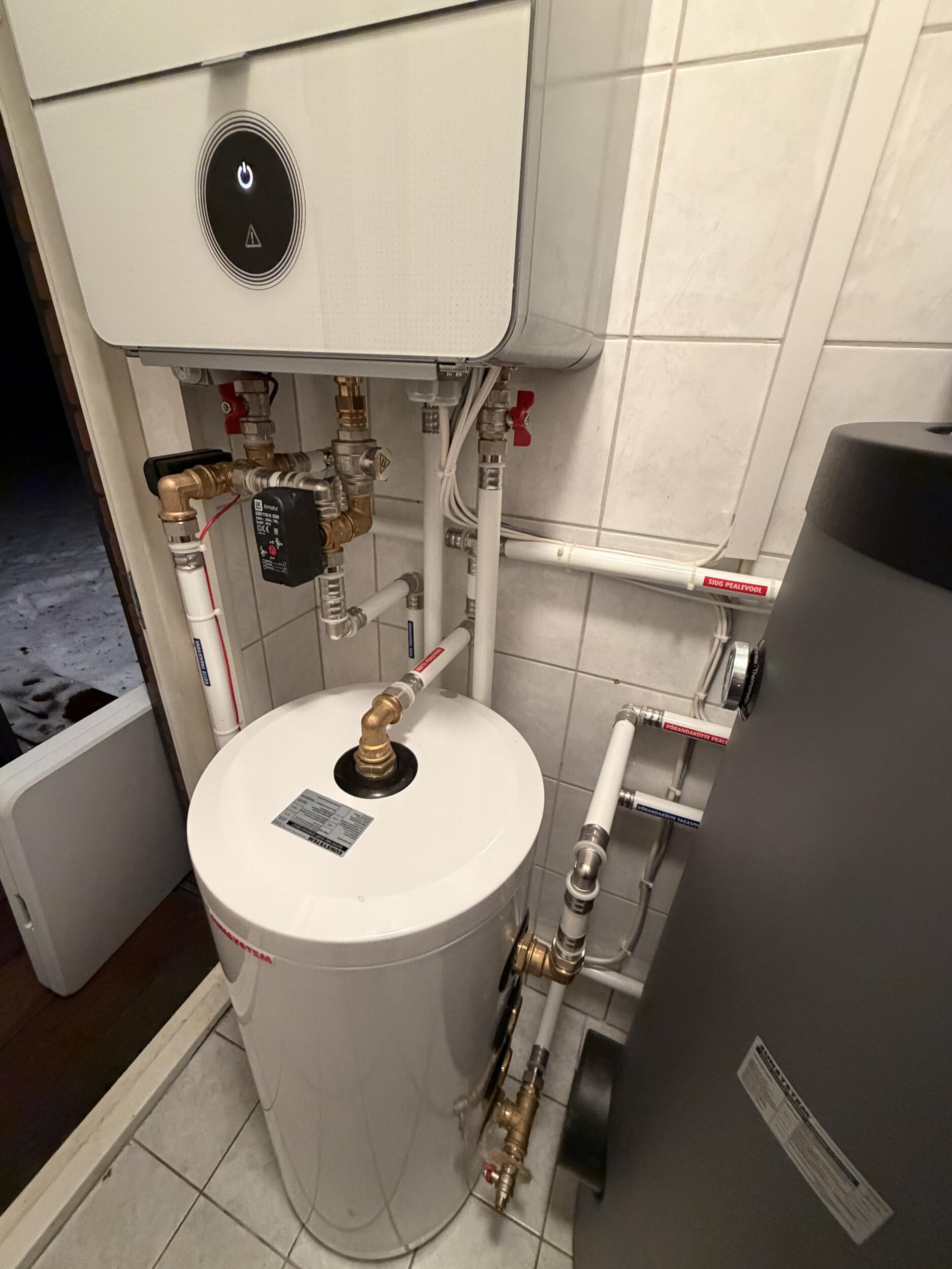 Olemas on samas katlaruumis lähestikku õhk-vesi soojuspump (Bosch Compress 7000i AWE 9) ja gaasikatel (Junkers ZSB22-3CE koos automaatikaga CW400+MM100).