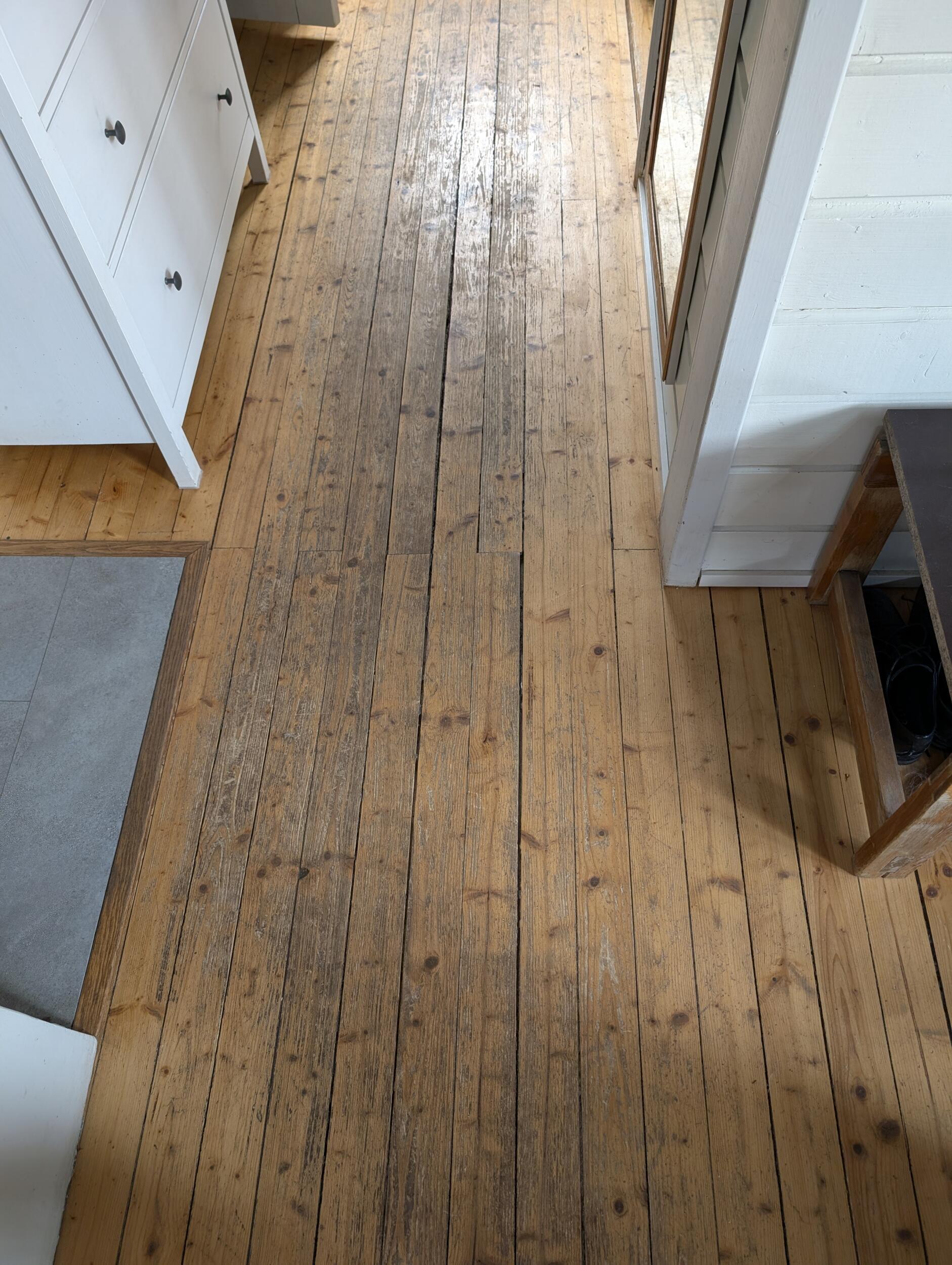 Õlitatud laudpõranda (mänd/kuusk) lihvimine ja lakkimine, lakk tellija poolt.