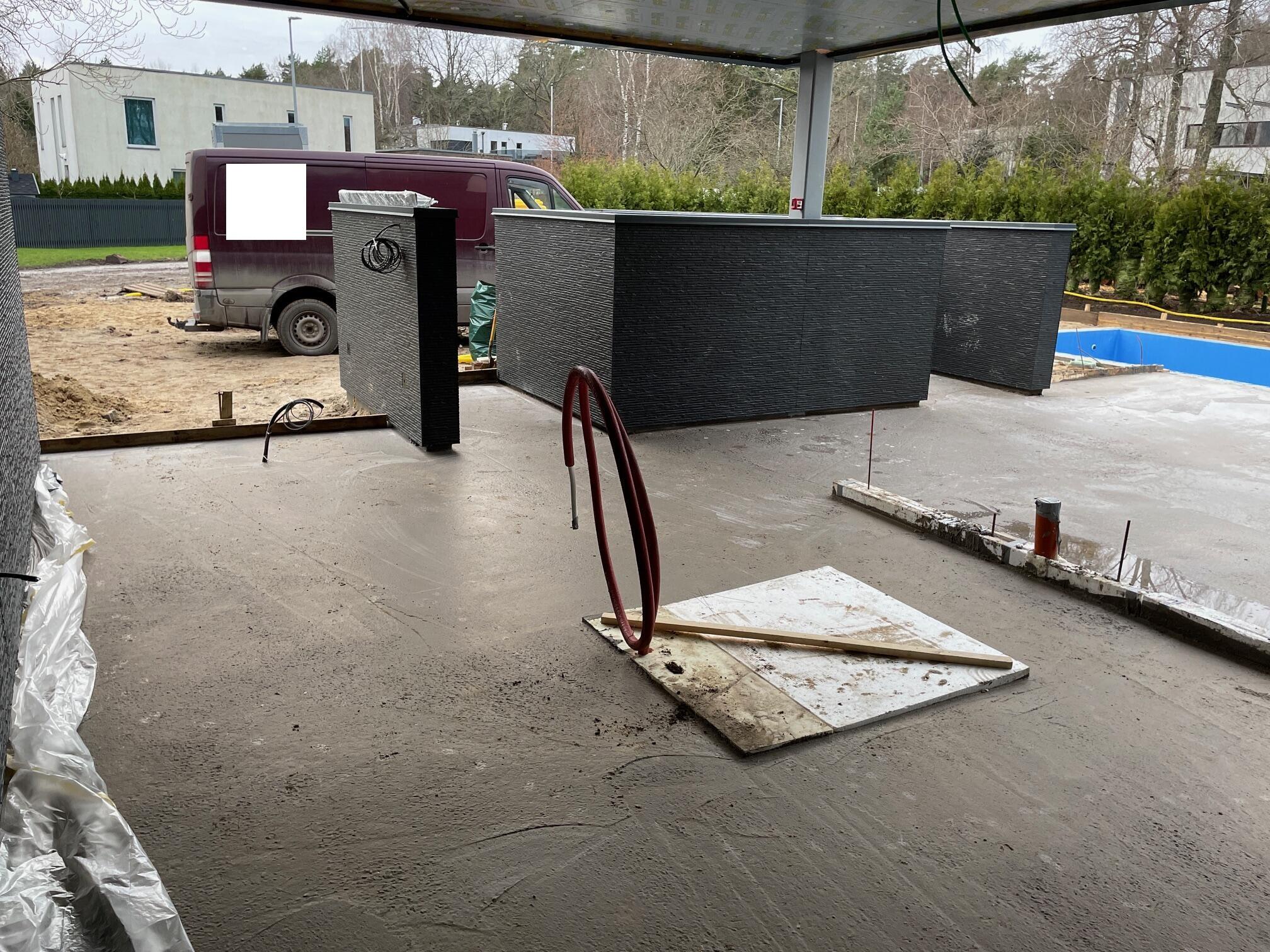 Hoone ümber on valatud fiiberbetooniga plaat paksusega 100mm.