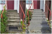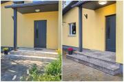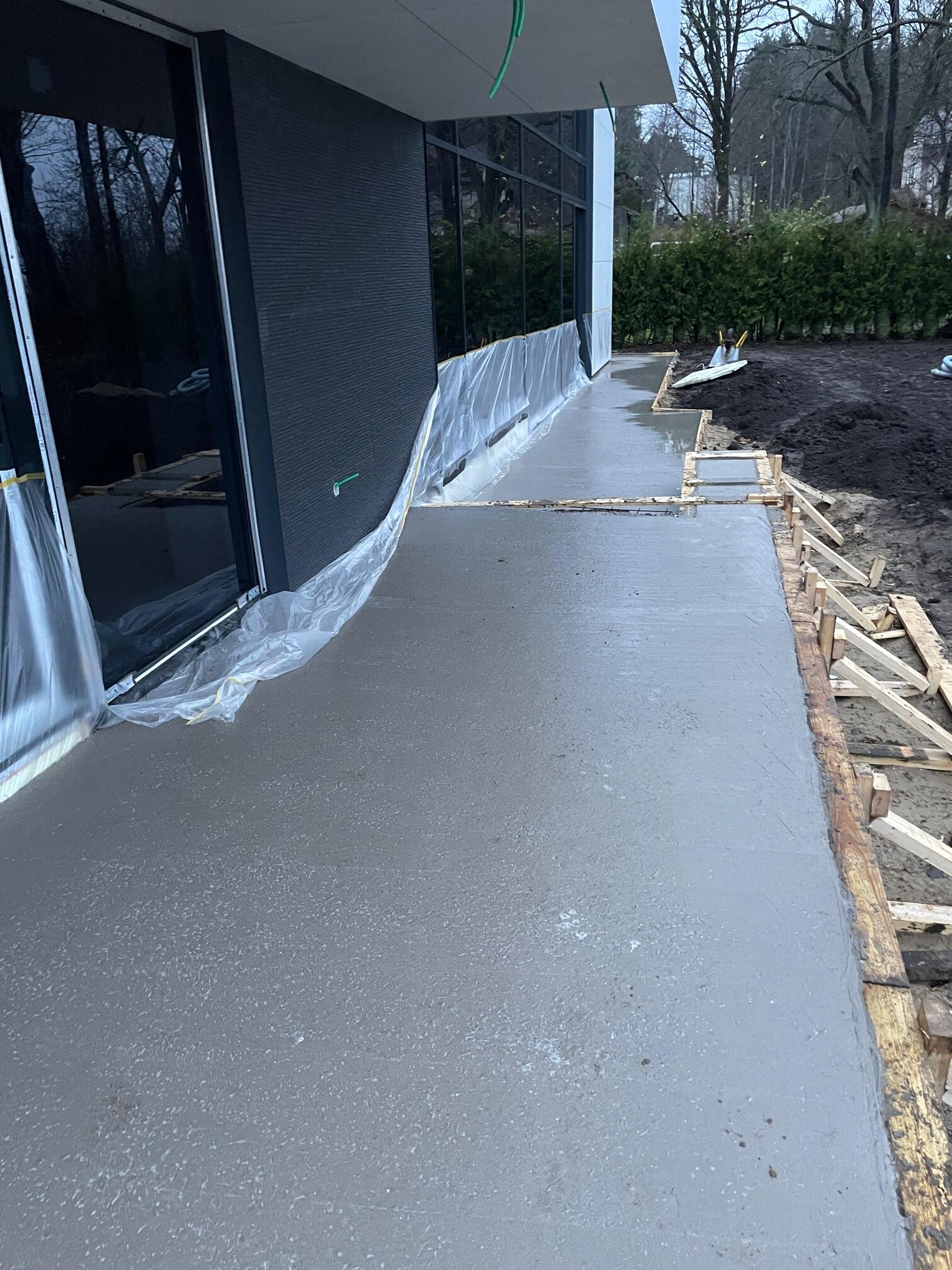 Tellija on tellinud põletatud graniitplaadi 20x300x1200mm. Hoone peasissekäigu juurde tuleb 3m pikkune renntrapp, mille suunas on vaja juhtide osa basseini ümbruse sademeveest. Mujal on vaja lihtsalt vesi suunata hoone välisseina juurest eemale (valatud betoonplaadile on antud väike kalle) murupinnale.