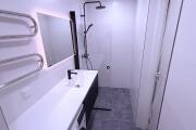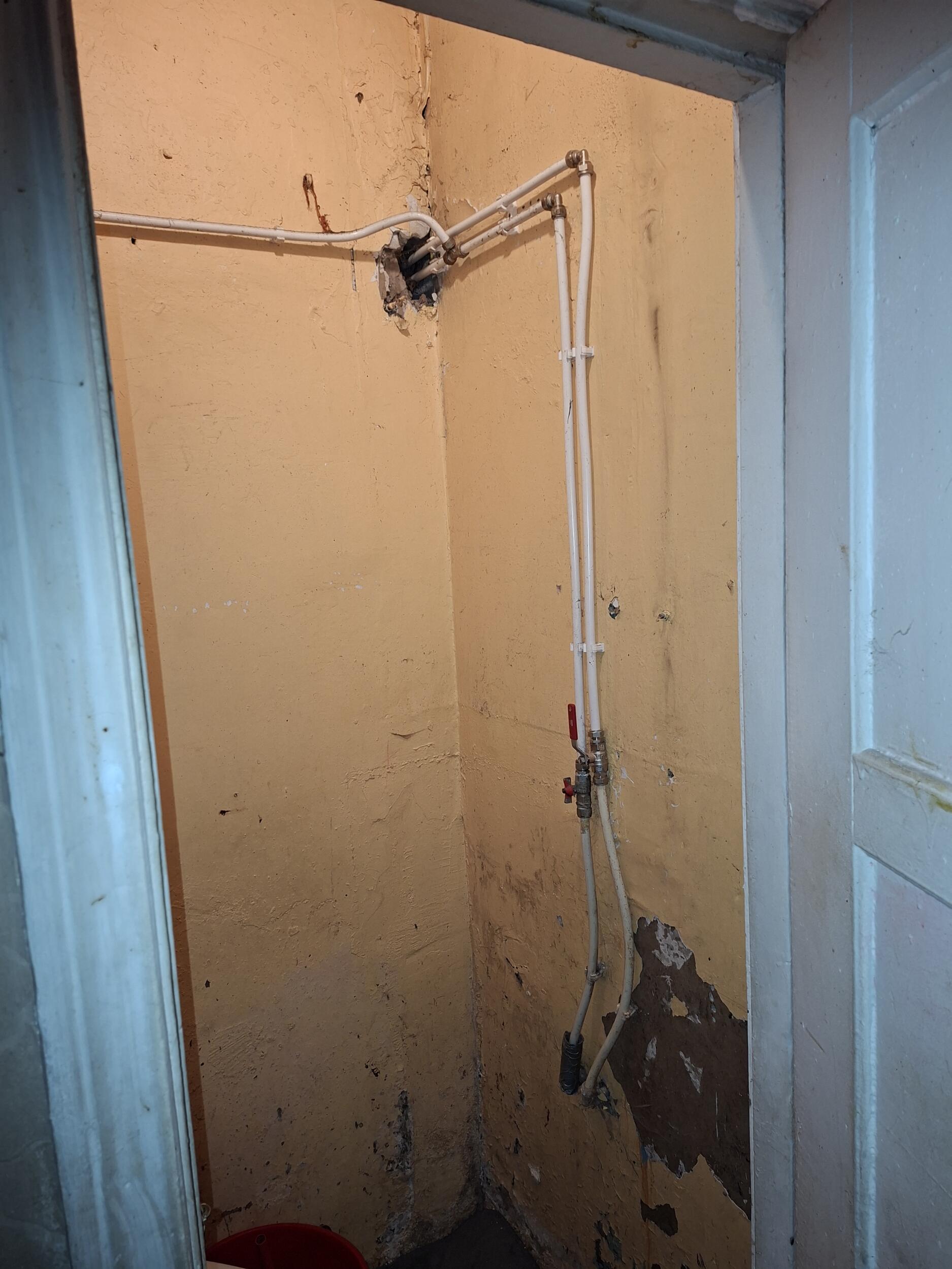 WC ja dušŝinurga vahelise seina lammutus ja uue ava viimistlus, duššinurgas vanade seinaplaatide eemaldus, hûdroisolatsiooni paigaldus WC ja duššinurgas, seinte ja põrandate tasandus ja plaatimine.