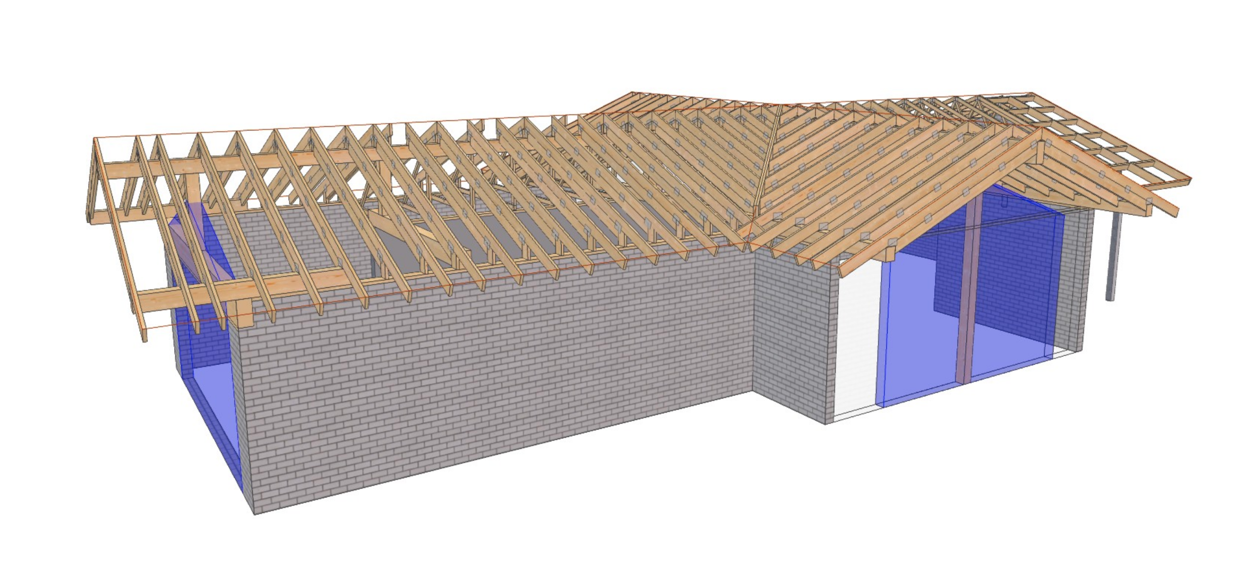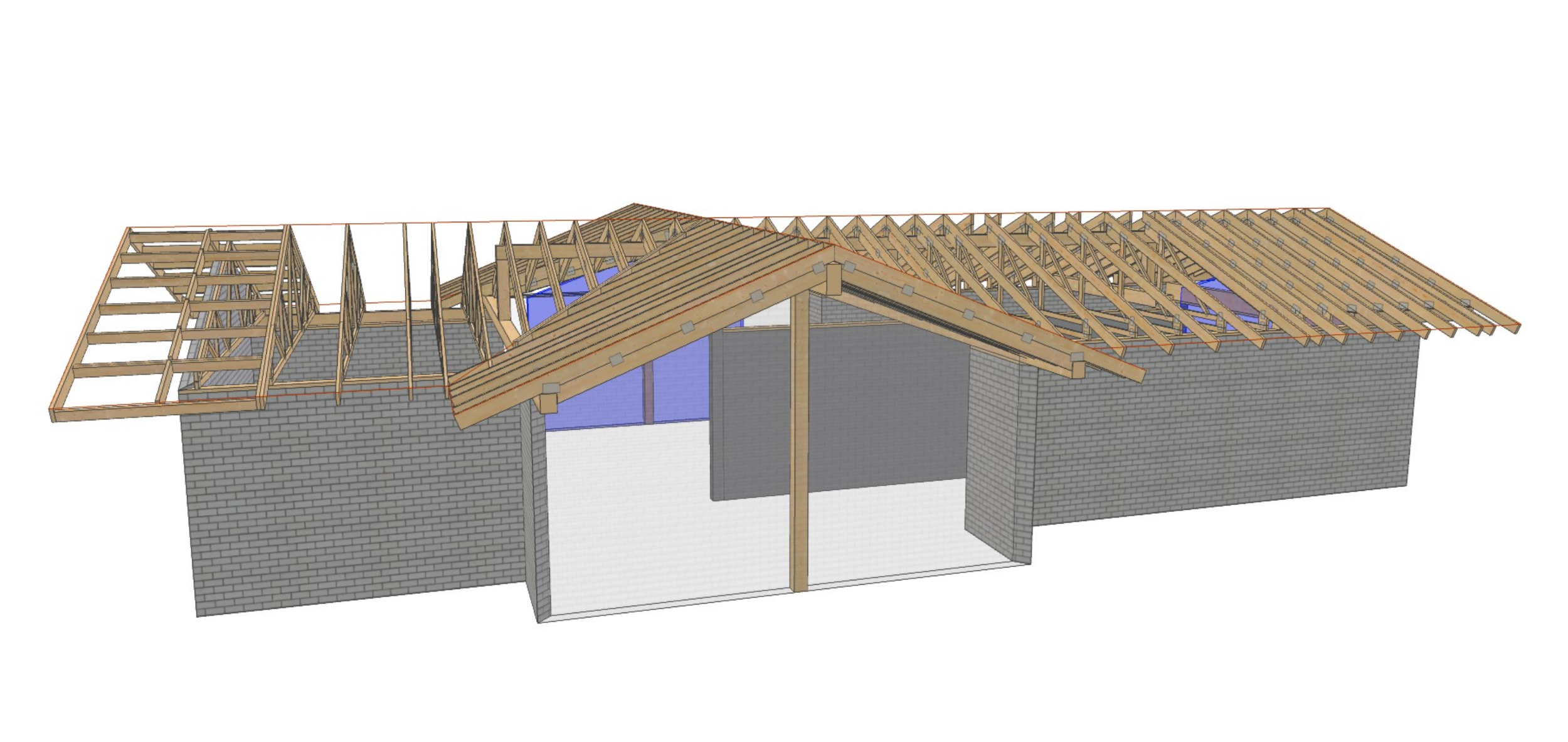 Kõik puit mis on pildil läheb paika ka. liimpuit. Müürivöö on paigaldatud. Lisaks fermidele, sarikatele ja liimpuidule tuleb paigaldada distants, hingav aluskate ja roovitus45x45. Katusepind ca 270m2
