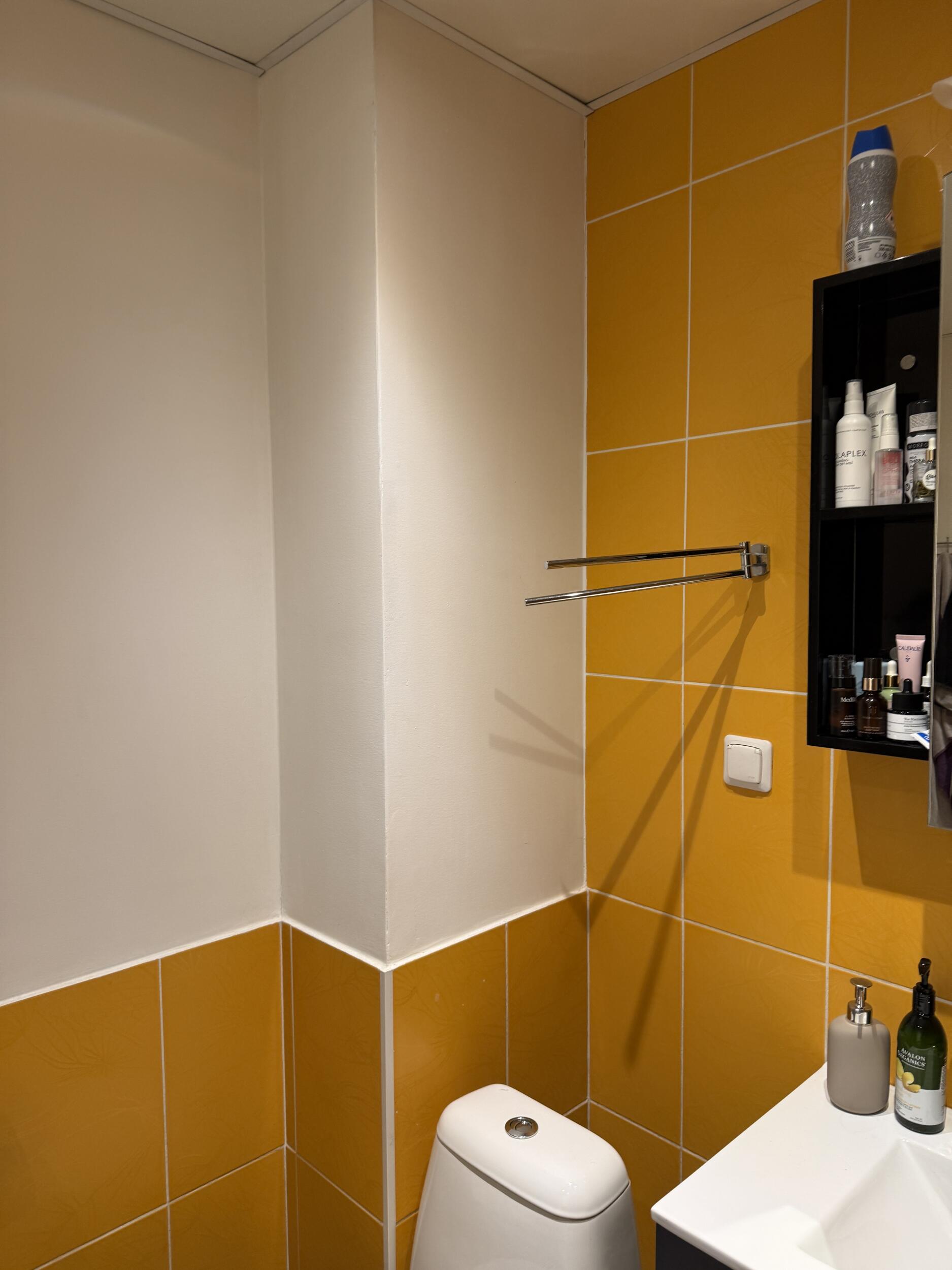 2. Katta seinas olevad plaadid ja WC poti ümber ehitatud karp mikrotsemendiga