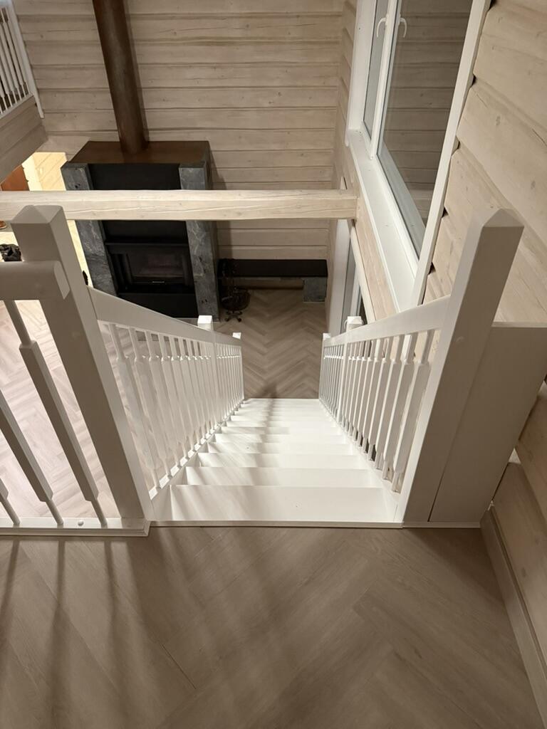 puidust trepp. soov oleks ümber tõsta sinna kus hetkel kamin on ja teha väike modifikatsioon: kaks astet seina suunas, kolmas aste on platvorm ja ülejäänud osa sealt edasi teisele korrusele. käsipuud ümber tõsta/modifitseerida.