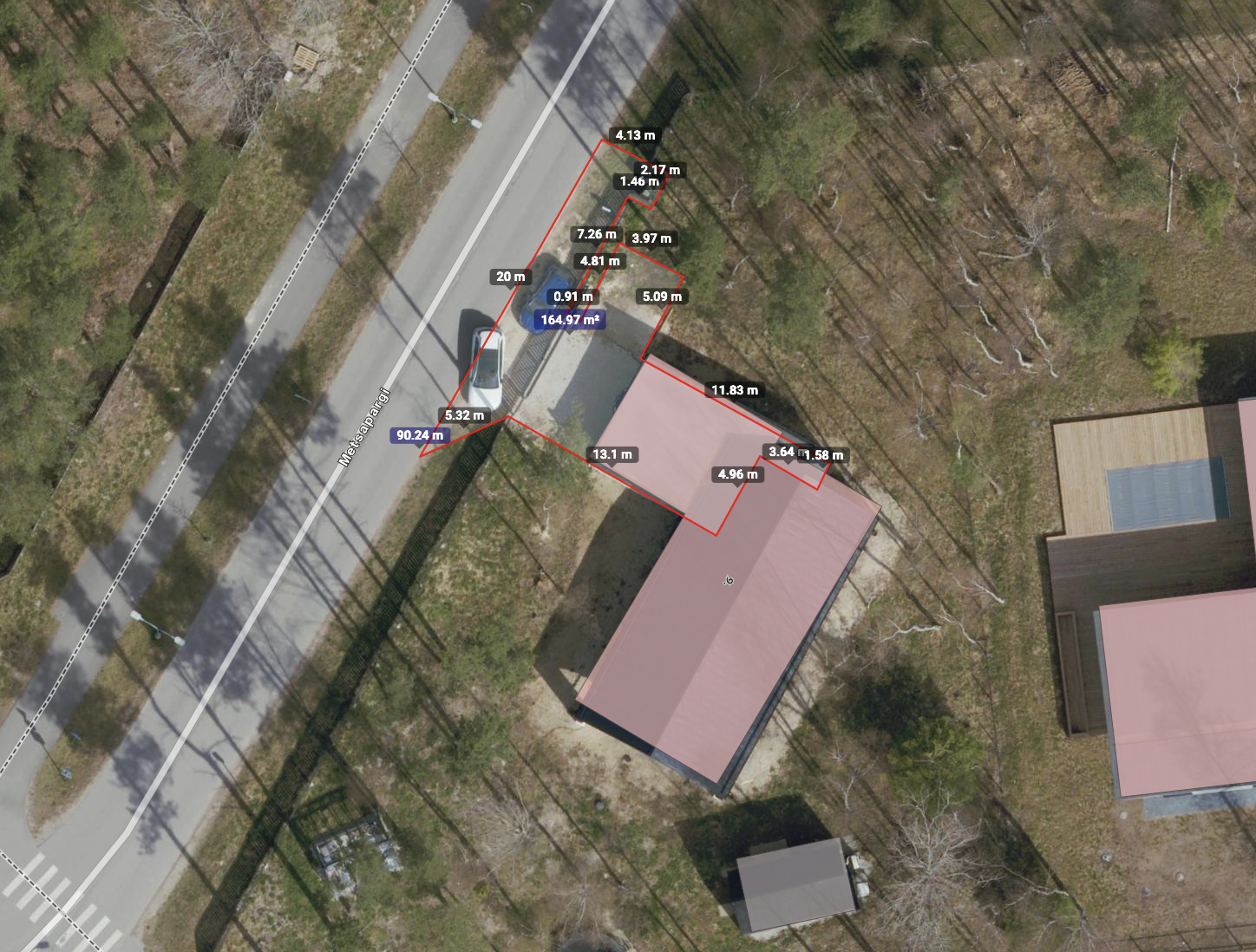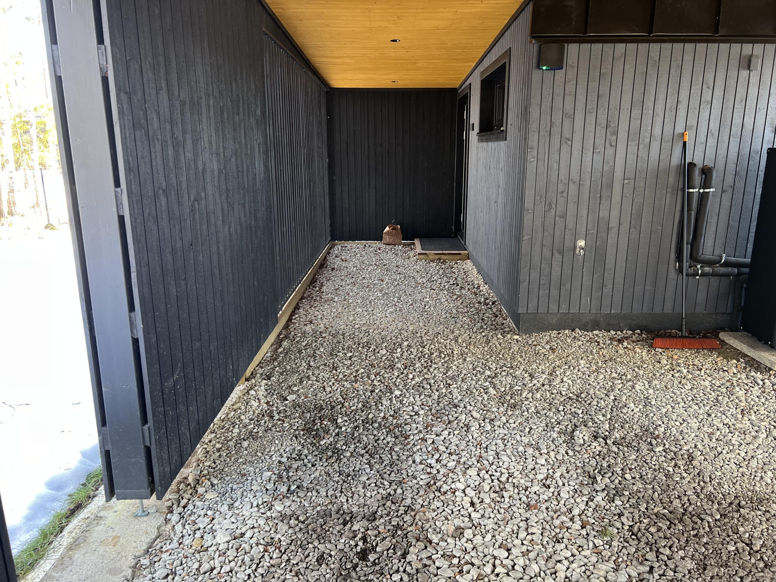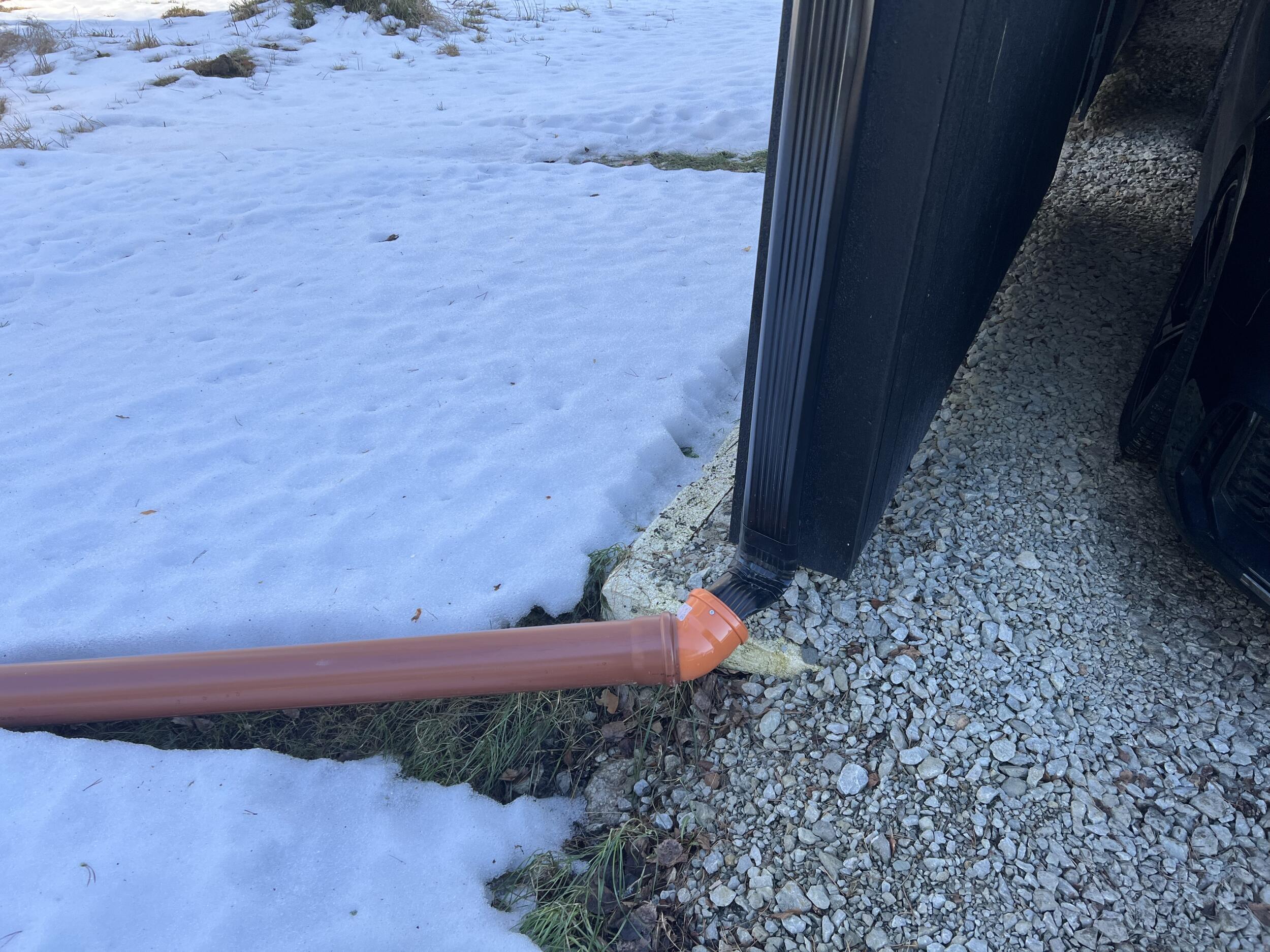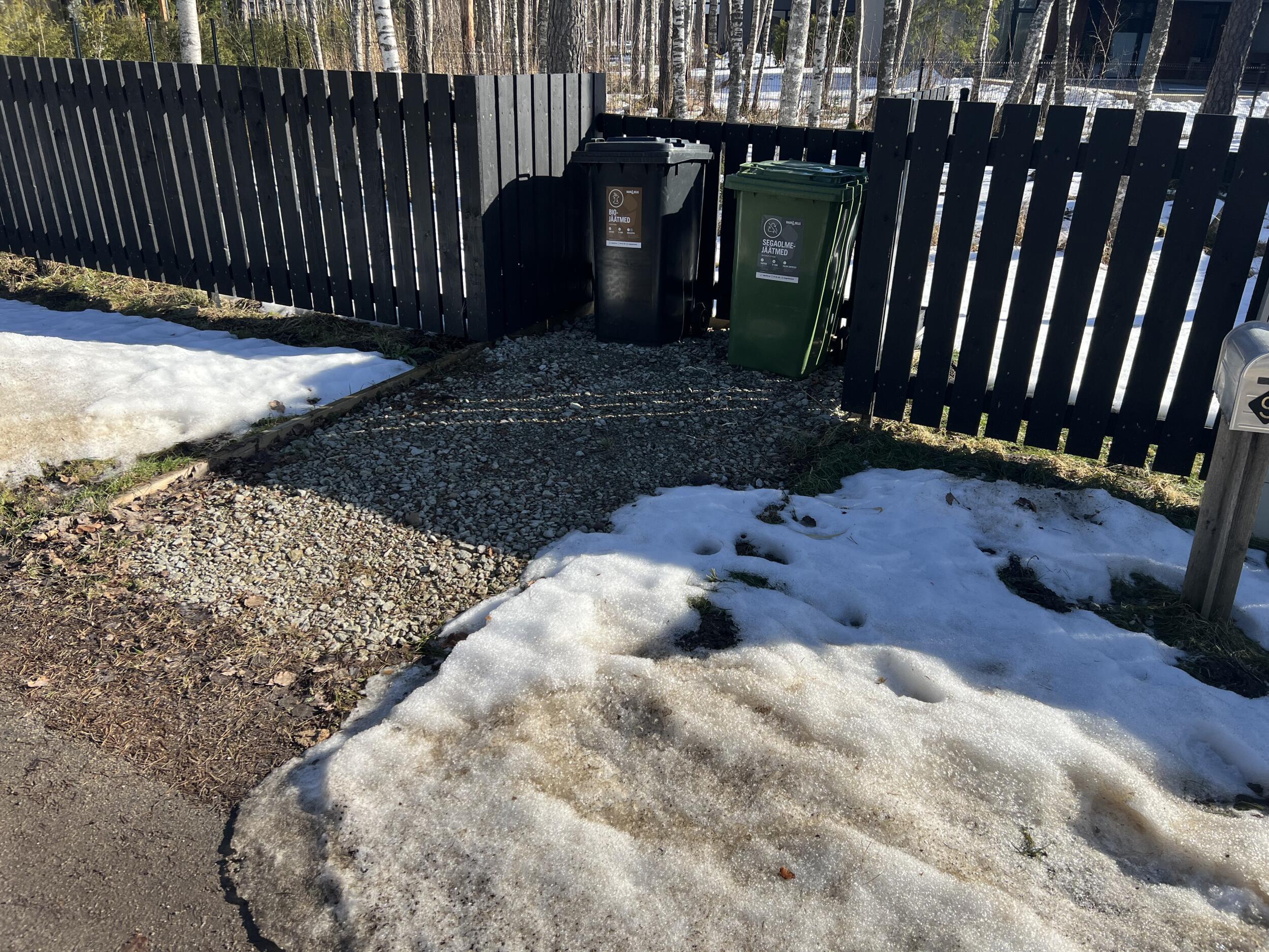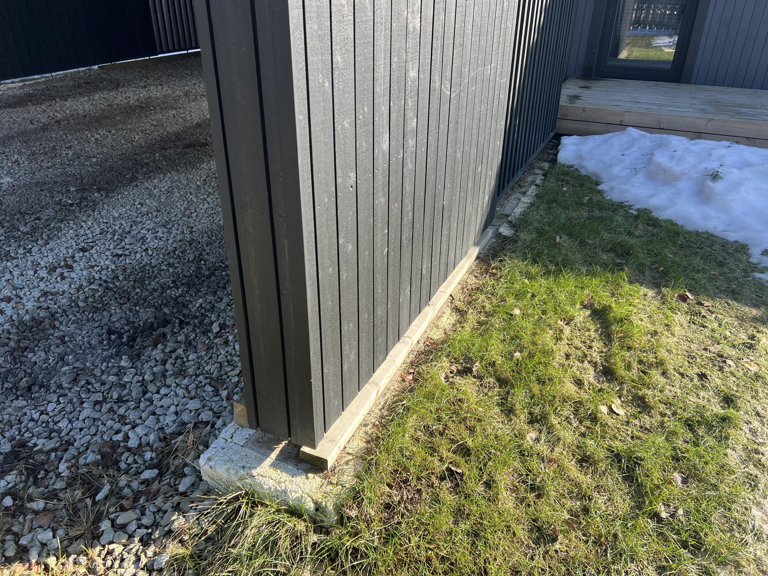 Aluspõhi on osaliselt tehtud auto varjualuse juures, aga ilmselt vaja uuesti üle teha. Ülejäänud pinnasel kasvab muru. Auto varjualuse juures on ka üks vihmaveetoru, mille sademed oleks vaja kivist renniga majast eemale suunata. Samuti peaks auto varjualuse kalded suunama tänava suunas või majast eemale. Hetkel on auto varjualuse juures lahtiselt varjualuse vundament ja penoplast, mis tuleks korralikult kividega katta (seda on ka piltidelt näha). Soojuspump liigutatakse tööde ajaks eest.