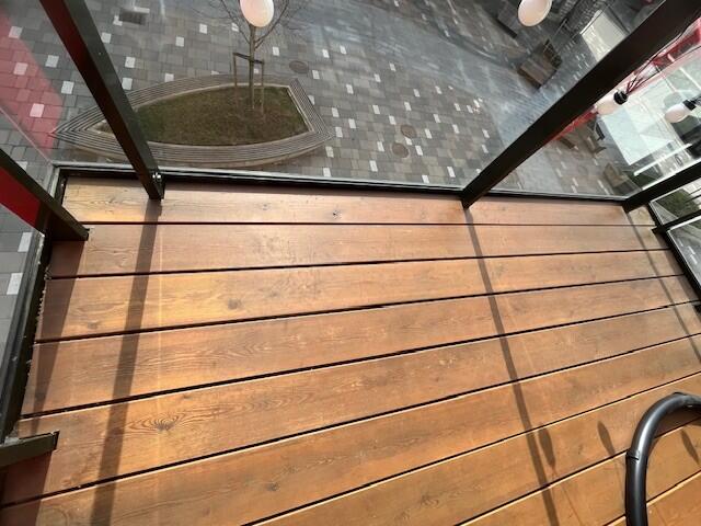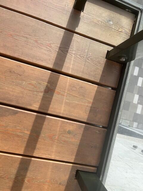 Kinnise rõdu põrandalauad vajaksid lihvimist ja õlitamist. Rõdu nurkades on tekkinud puidupinnale pisut veekahjustust. Kogupind 7,3m2. Töödega võib alustada juba praegu.