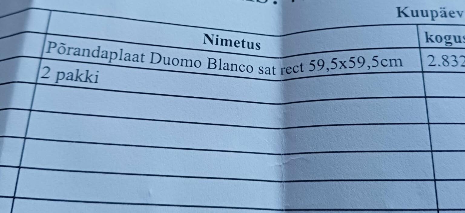 Pakkumise kirjeldus: Hind sisaldab töökulu vastavalt hanke kirjeldusele. Materjalid lisanduvad. Võimalik tasuda sularahas ilma käibemaksuta. Töö teostab kvalifitseeritud plaatija (tase 4). Töödele anname garantii. |