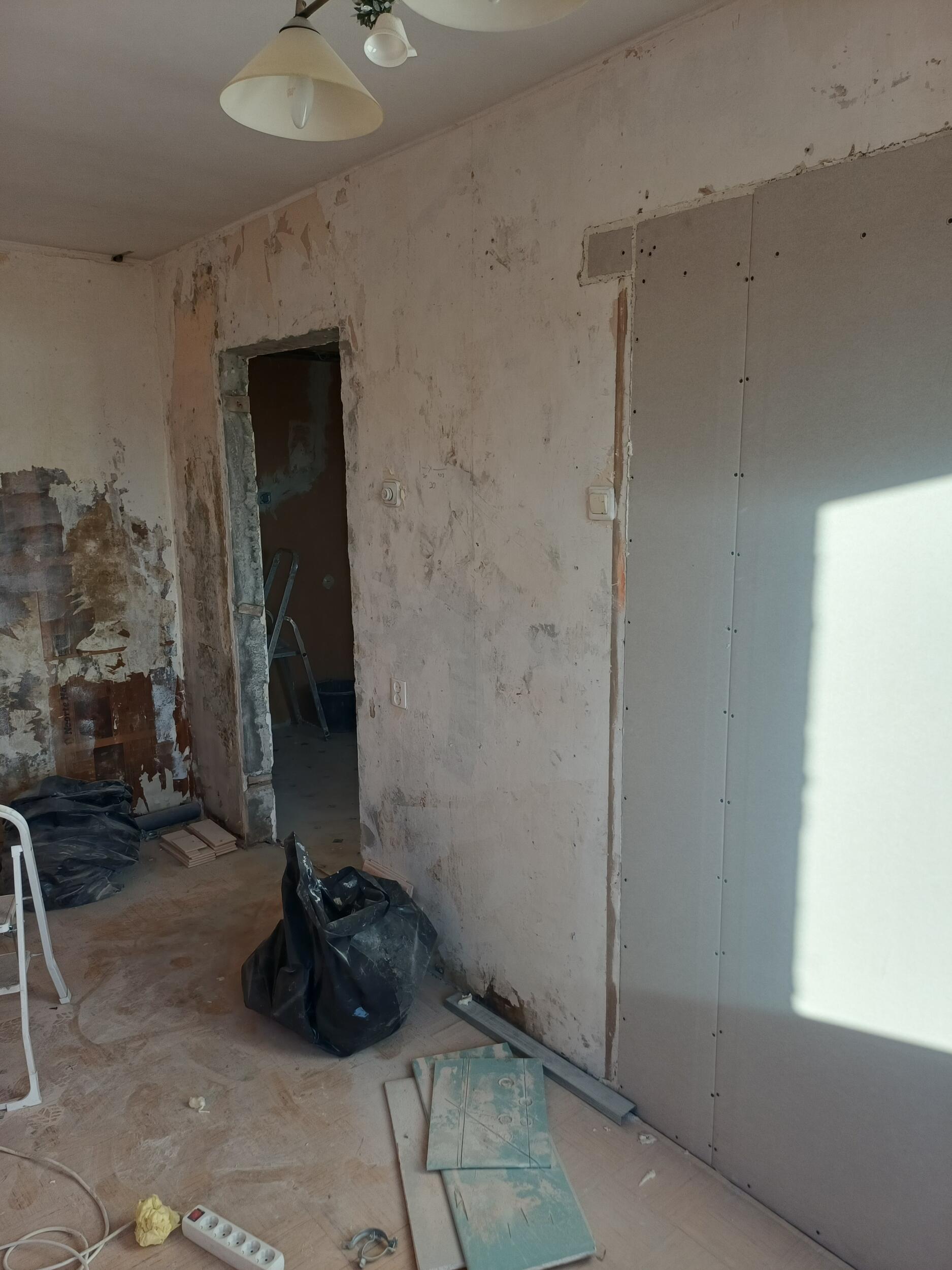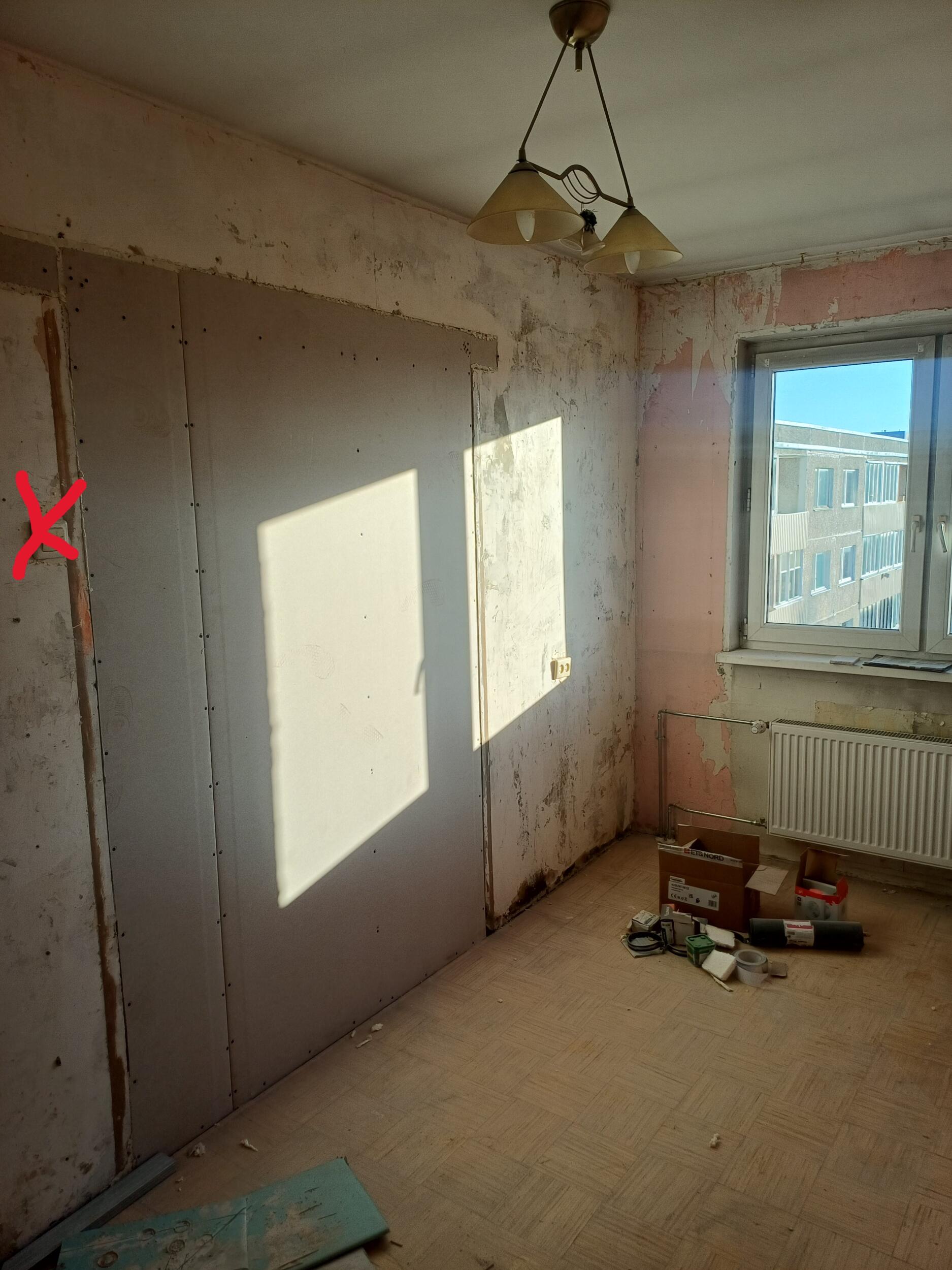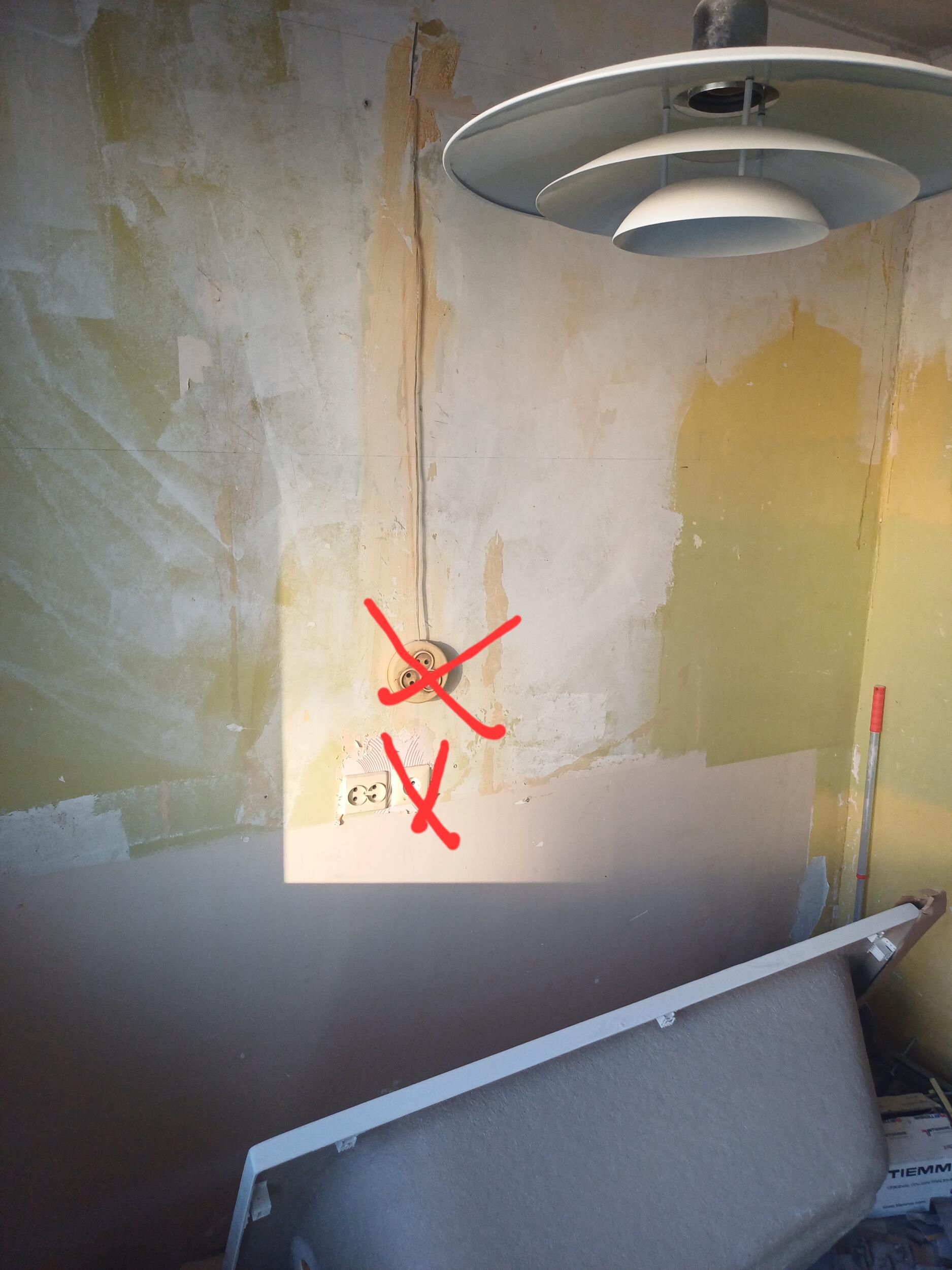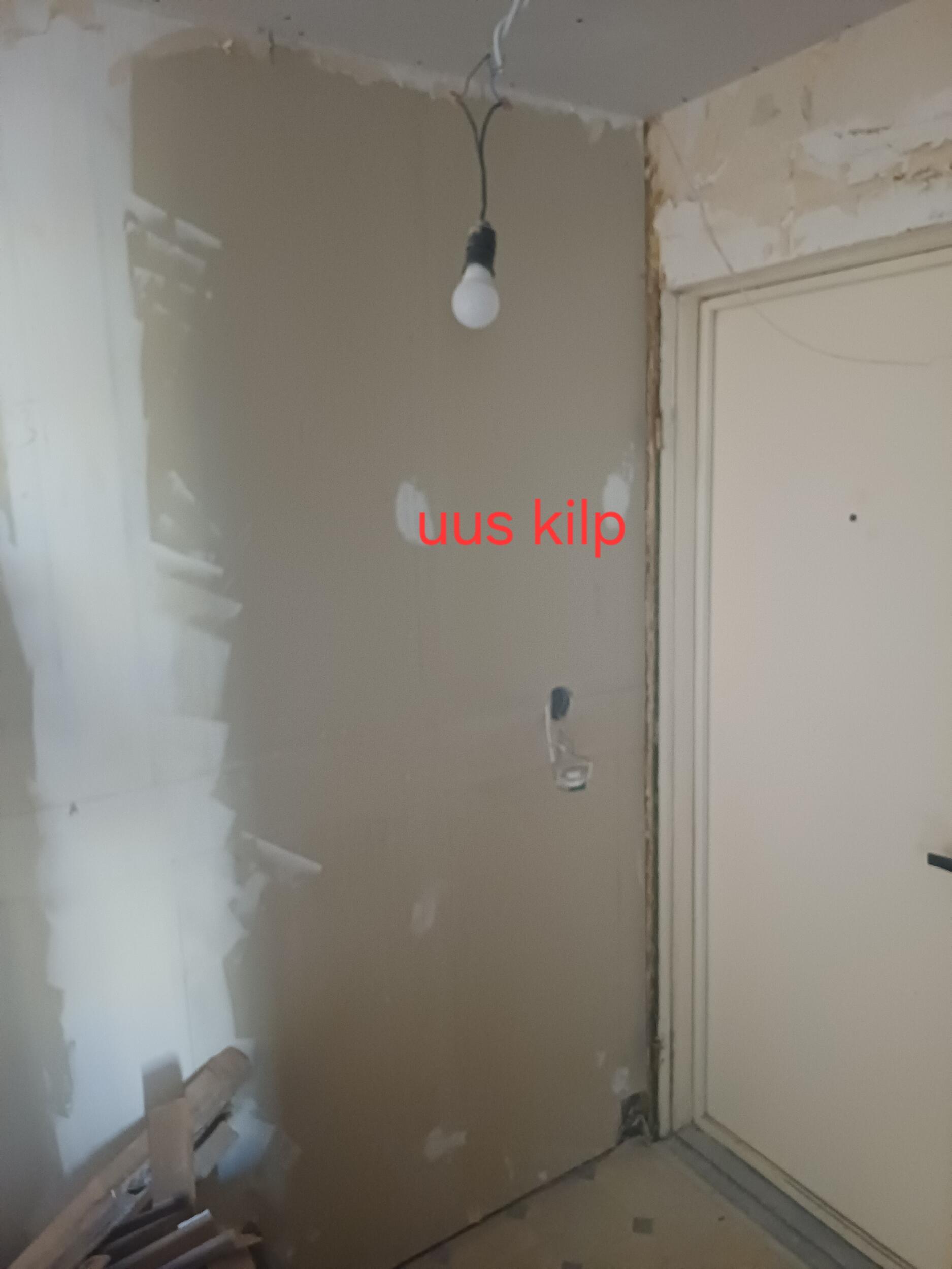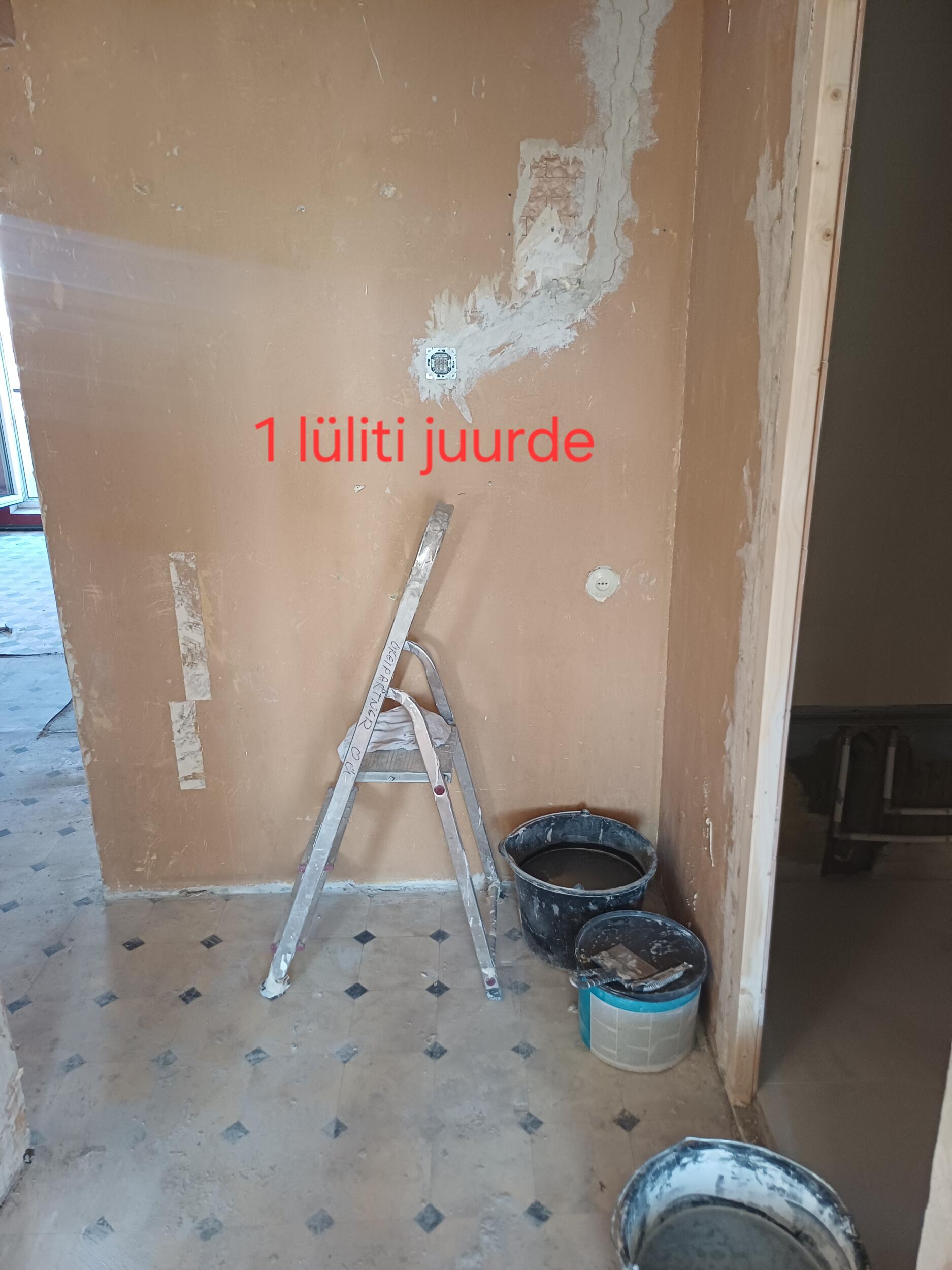 Kohtades, kuhu paigaldati kipsplaat lakke (esikud, vannituba ja wc) on uus juhtmestik paigaldatud, tubadesse mitte. Vanasse kööki tuleb uus tuba ja köök paigaldatakse elutuppa (avatud köök-elutuba). Piltidele on märgitud, mis pistikud tuleks ära kaotada ja mis juurde tekitada. Ühes toas tuleb vana laevalgusti asemele kaks uut laevalgustit (mõlema asukoht on ca 1 meeter eemal praegusest lambi asukohast, fotol on ka tehtud kaks ringi markeriga uute lampide asukoha kohta). Lisaks sooviks elektrikilbi tuppa tuua (fotol on märgitud asukoht).
