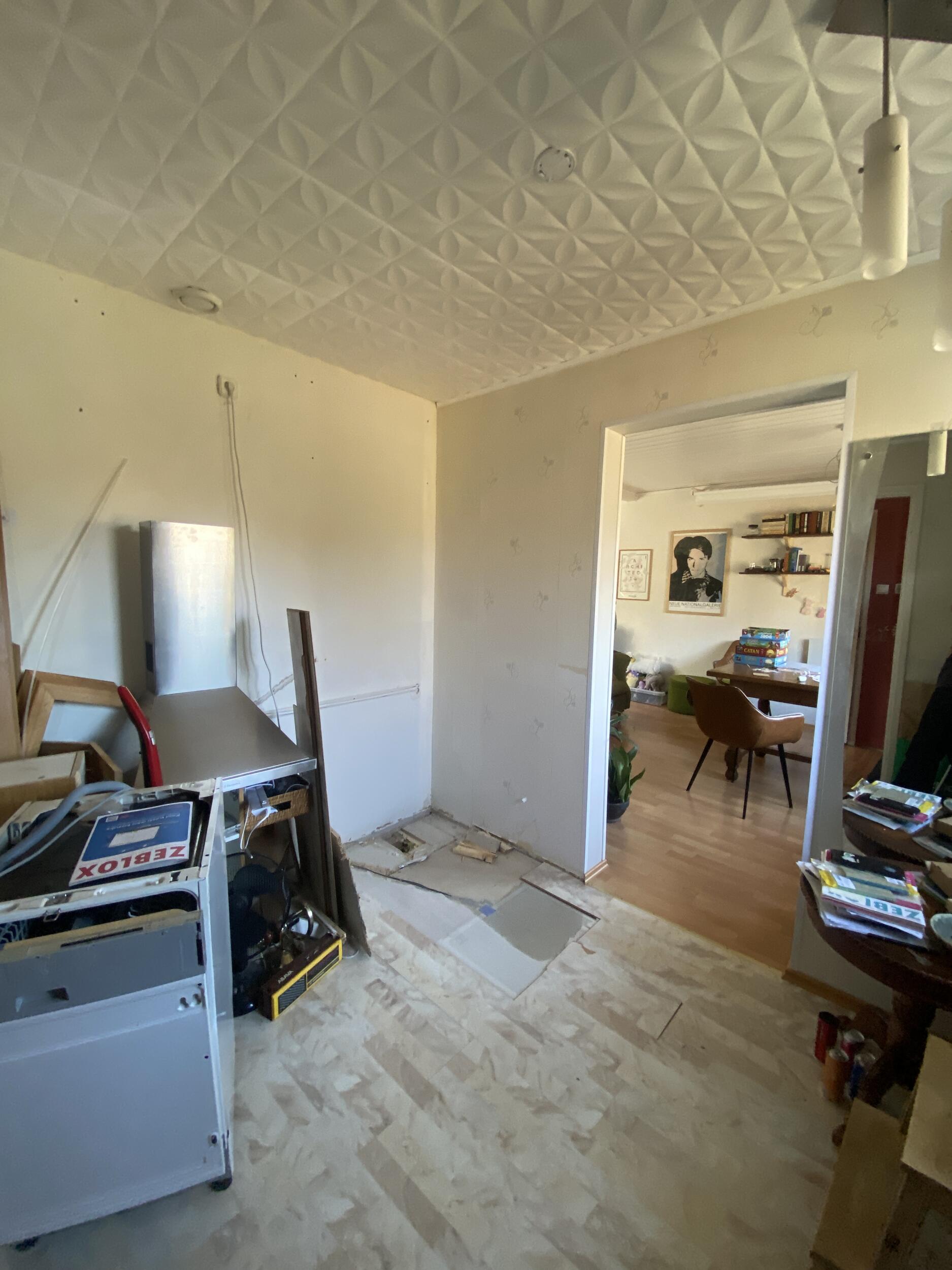 Korstna kõrvale on plaanitud ahju ehitus. Selleks on vaja eemaldada osa põrandast ja sein. Vajadusel see toestada, valada armeeritud betoon alus ahjule 90x80x10 cm. Lammutatud materjal utiliseerida.
