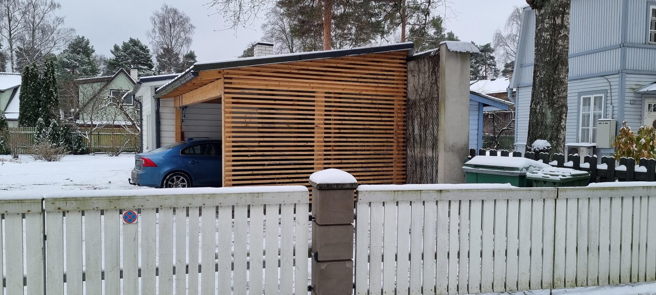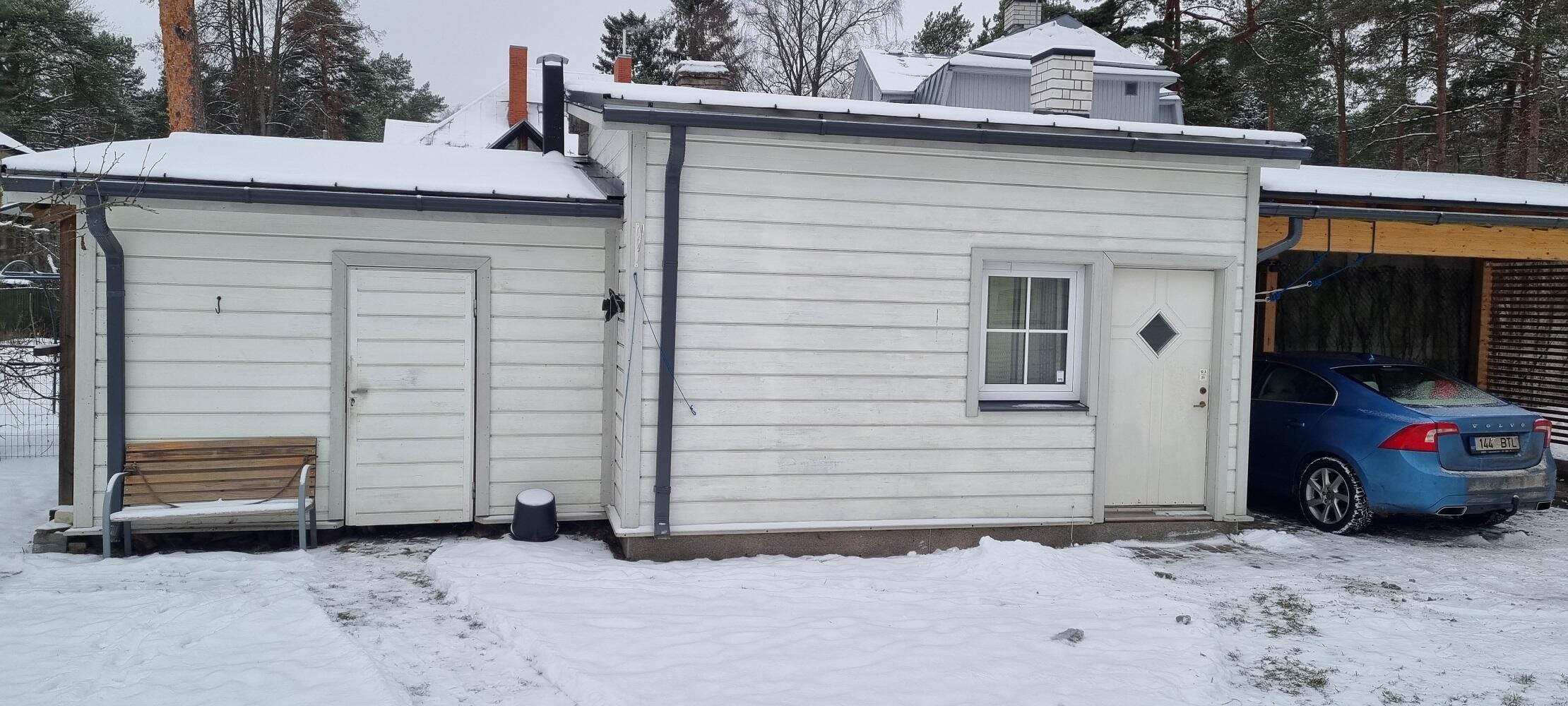 Huvitatul oleks hea kohapeal üle vaadata. Kõik pinnad tuleb pesta, auto varjualusel lahtine lakk eemaladada sobiva tehnoloogiaga. Vajalikud katmised ja kõik puit uuesti üle värvida samade toonidega. Elumaja, kuur, kõrvalhoone (fotol), auto katusealune ja aed. Terrass on vaja pesta ja õlitada.