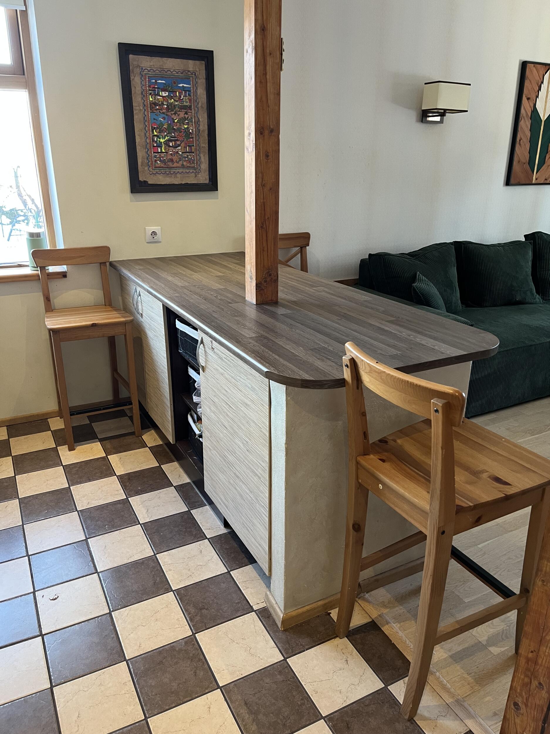 * Vana köögi lammutus, sh köögi seinaplaadid ja köögisaar maha võtta. Utiliseerida vana köök.